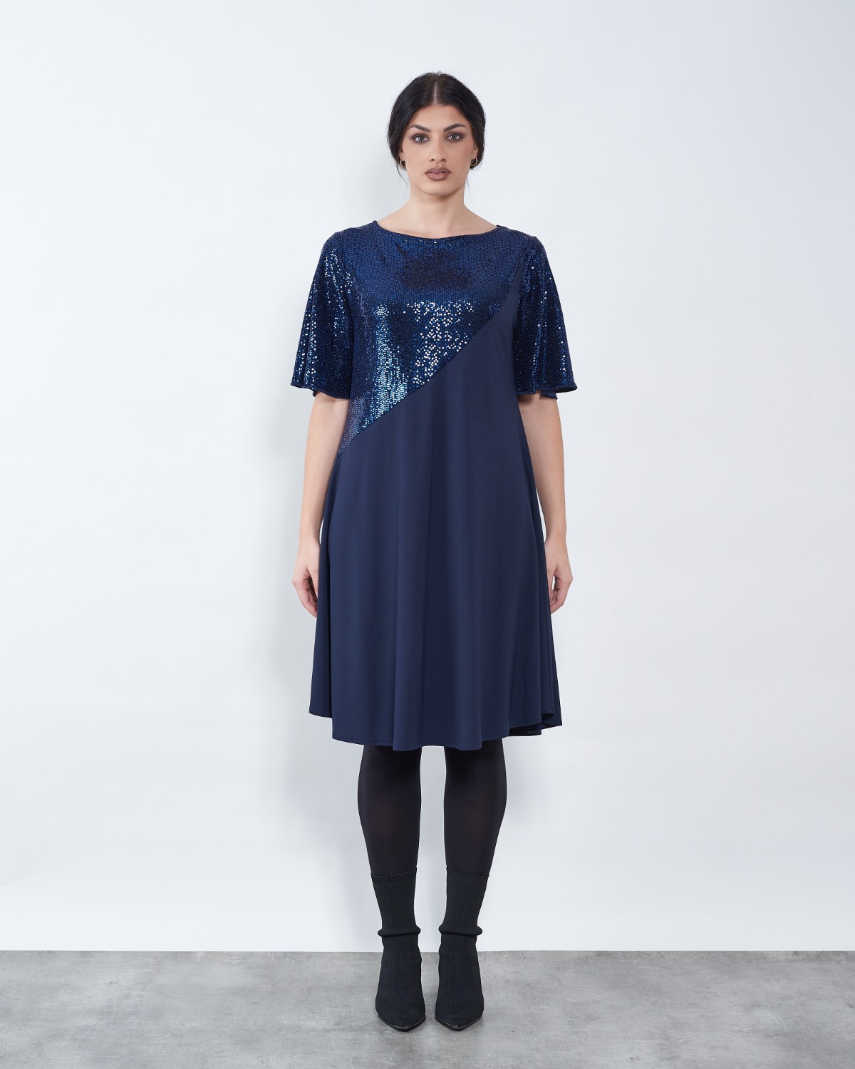U gornjem dijelu ističe se sjajni umetak, te lepršavi rukavi.