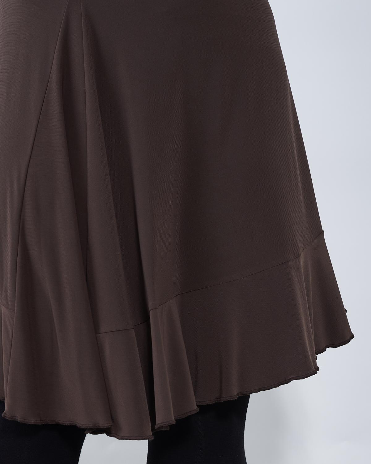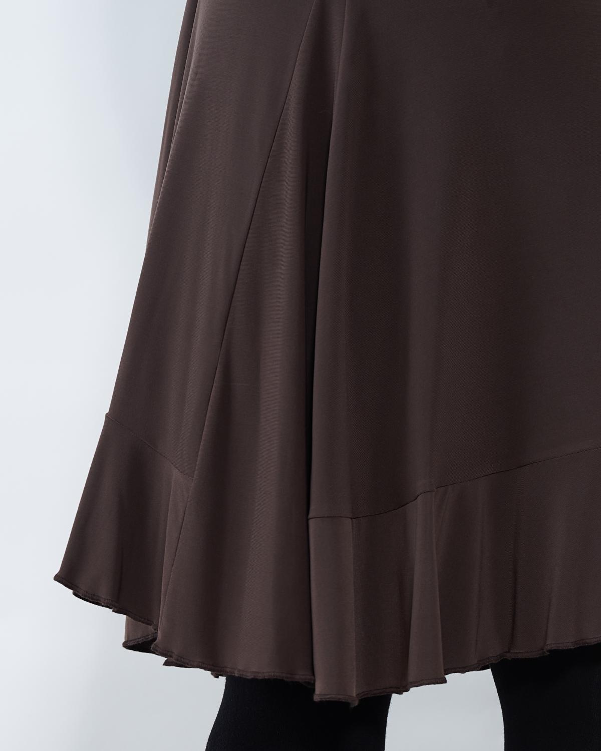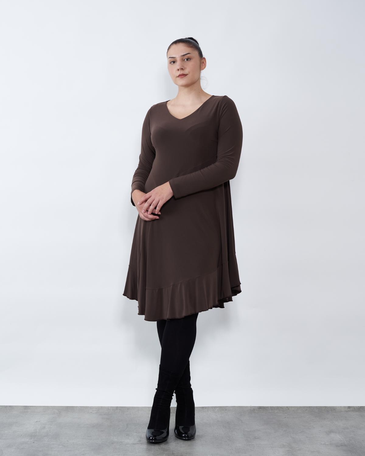 Haljina u gornjem dijelu prati liniju tijela te je u struku blago rezana u V.