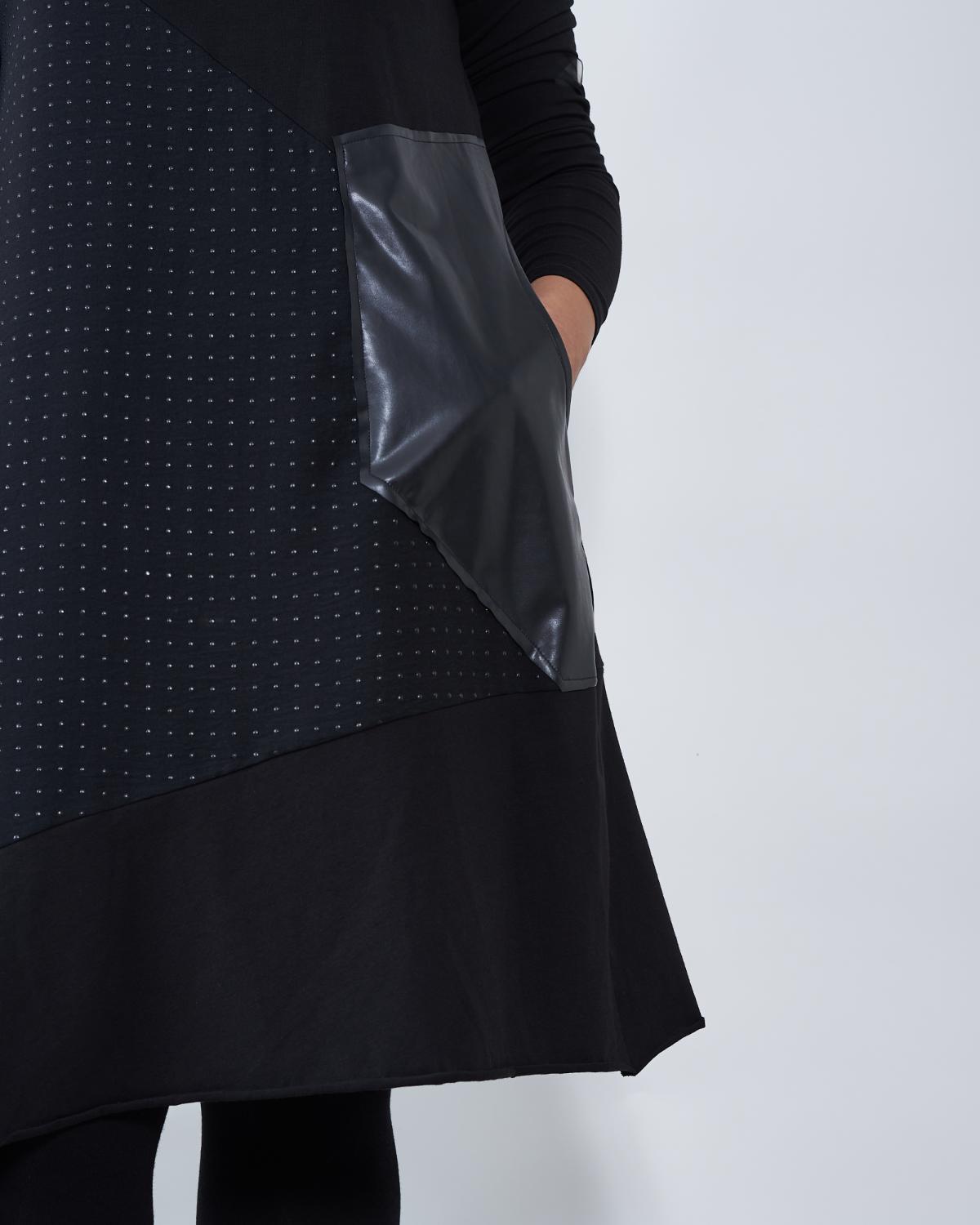 Na prednjem dijelu dodatak druge tkanine te džep dodatno potpomažu vizualnom sakrivanju nedostataka u području struka i bokova.
