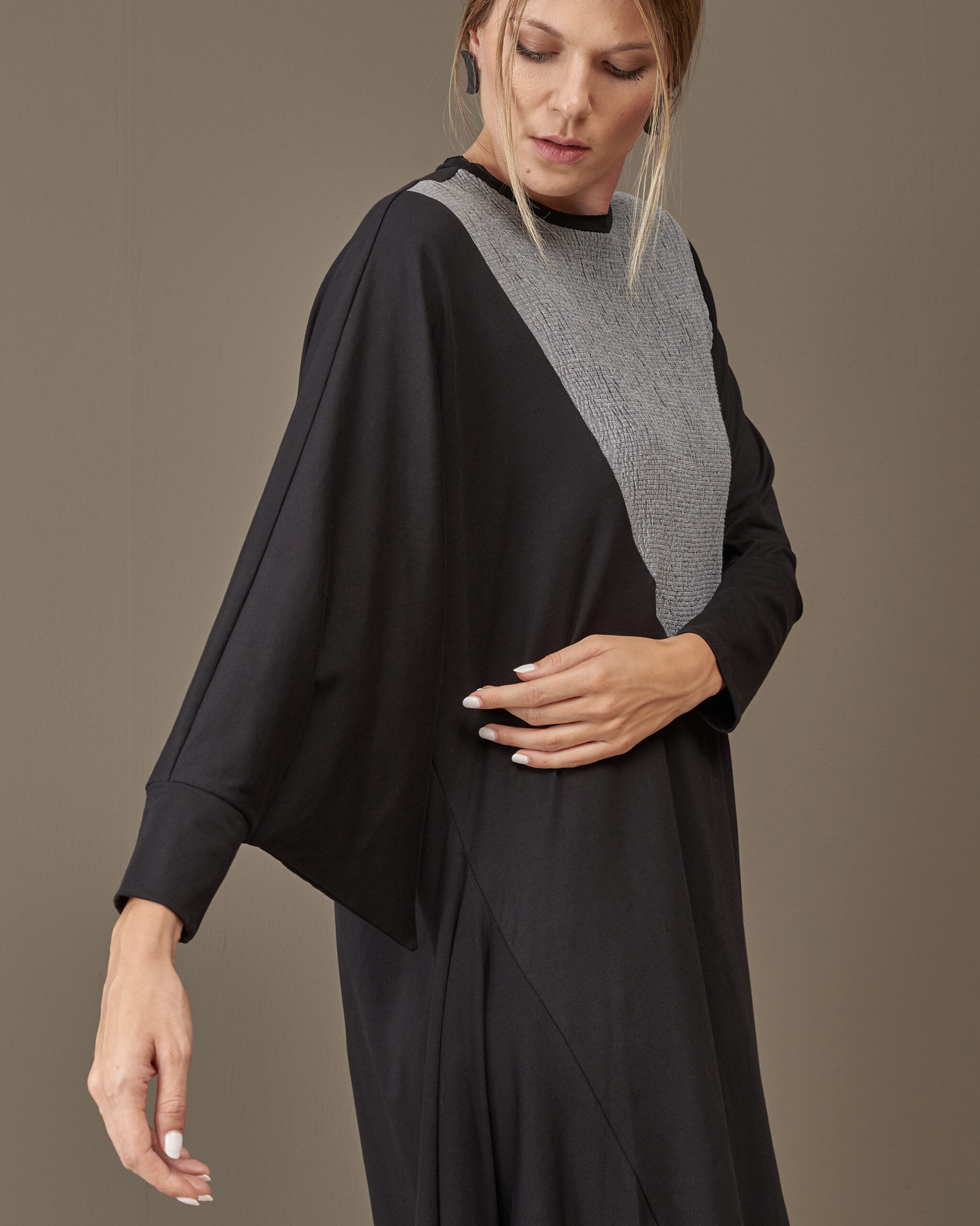 Monotoniju haljine "razbija" desni rukav koji joj svojim izgledom daje dozu neobičnosti.