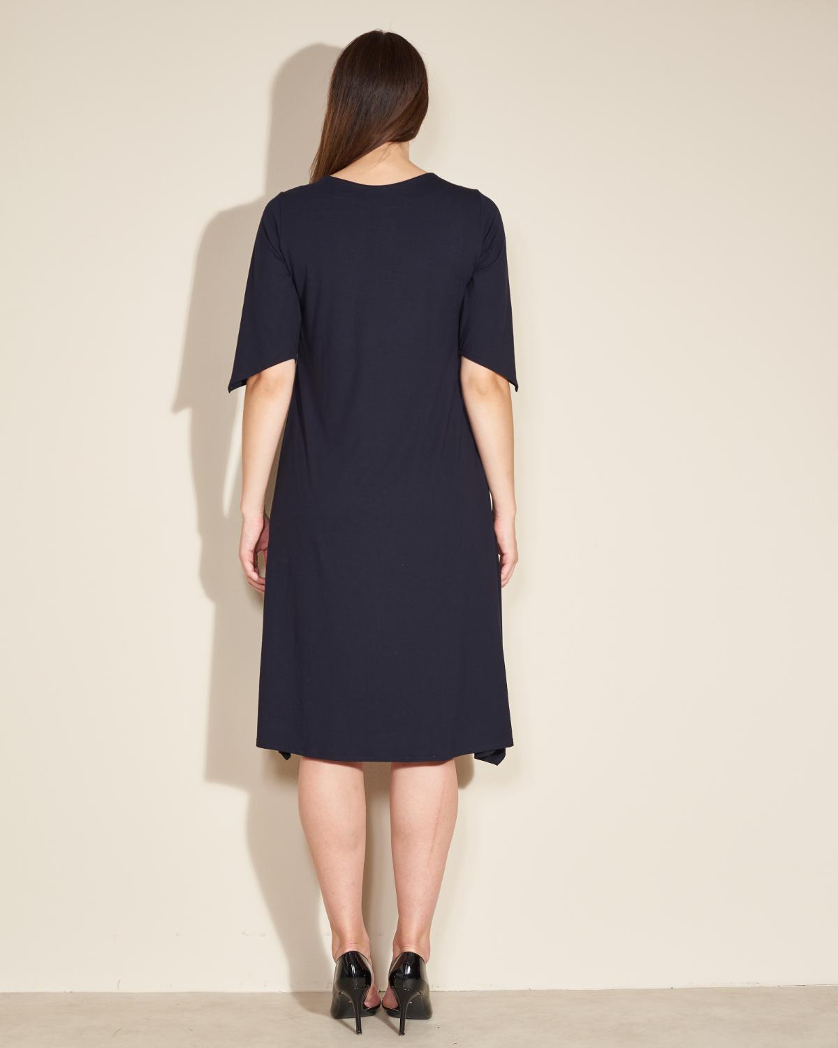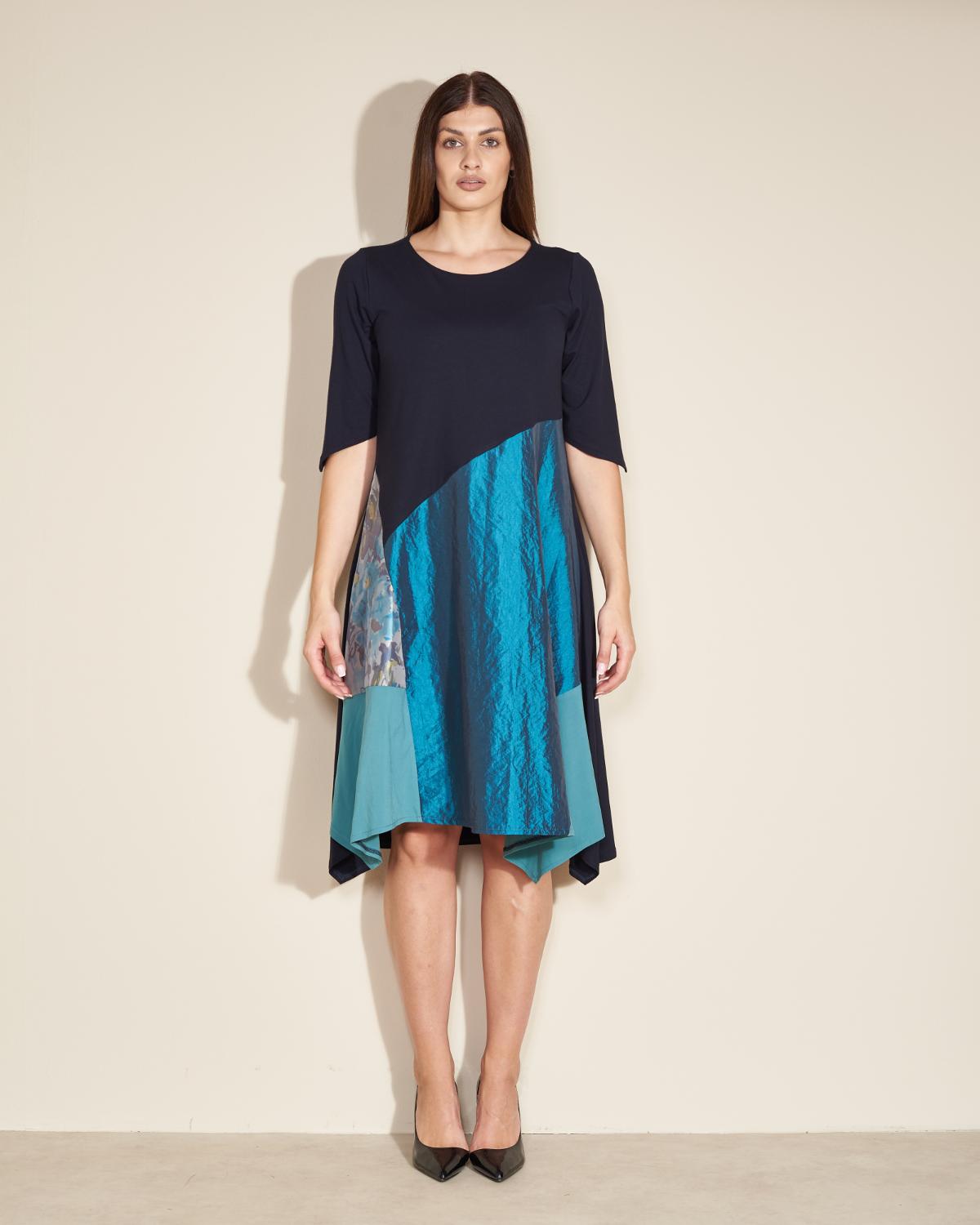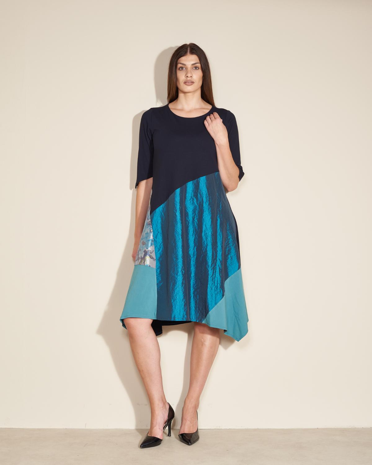 Tamnoplava viskoza kombinirana je sa umetcima u tirkiznoj boji.