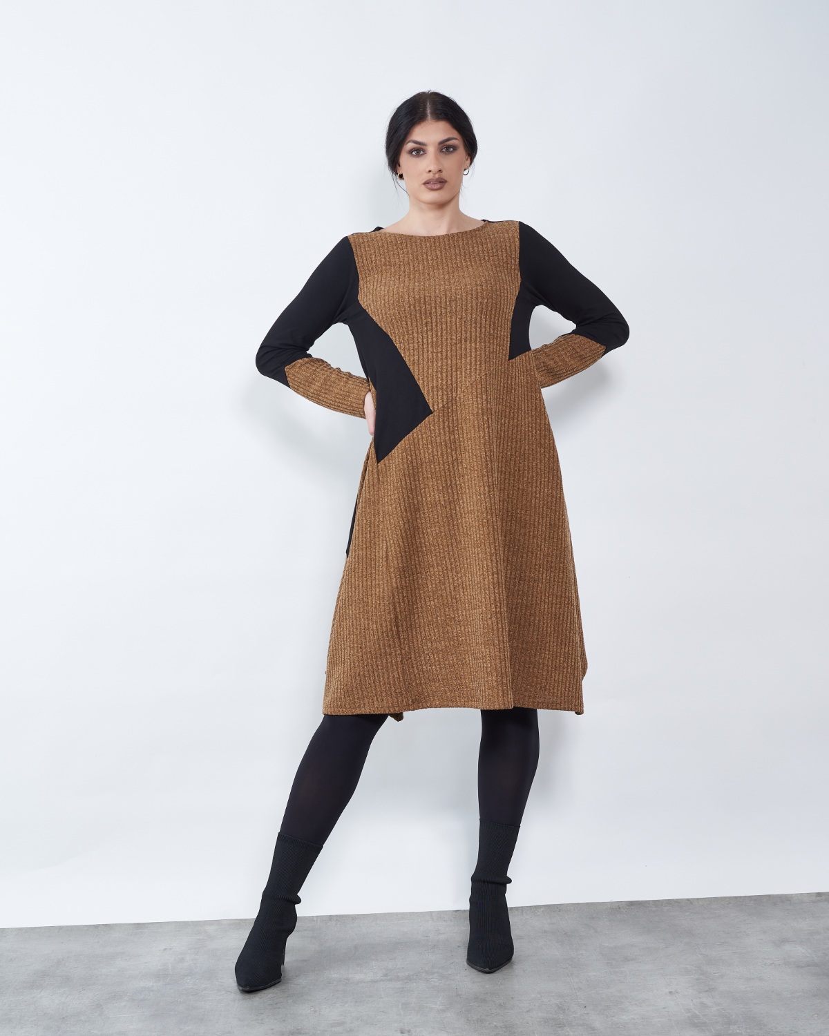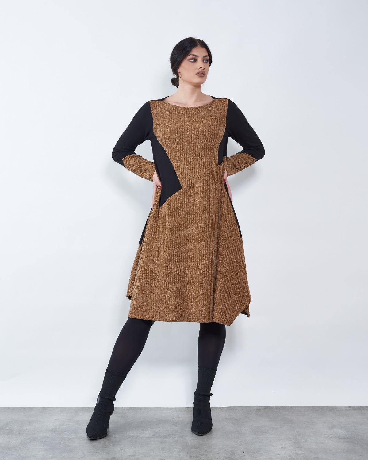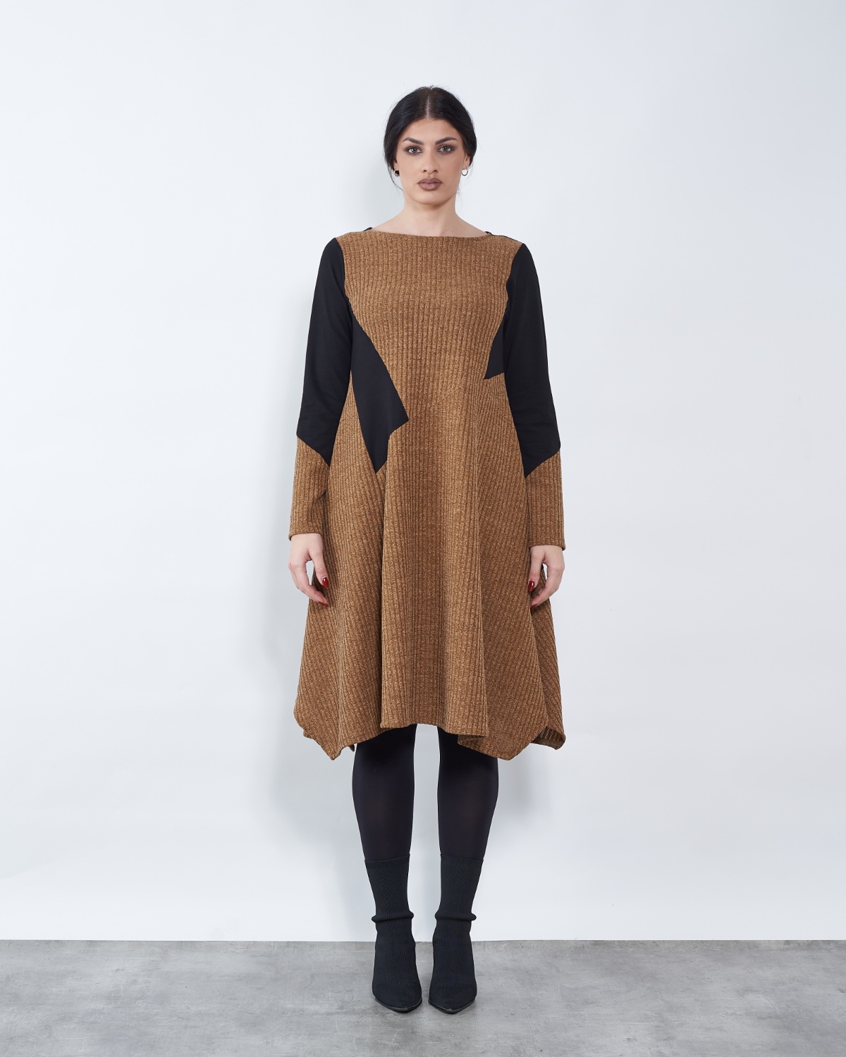 Dnevna midi haljina dugih rukava za svakodnevno nošenje.