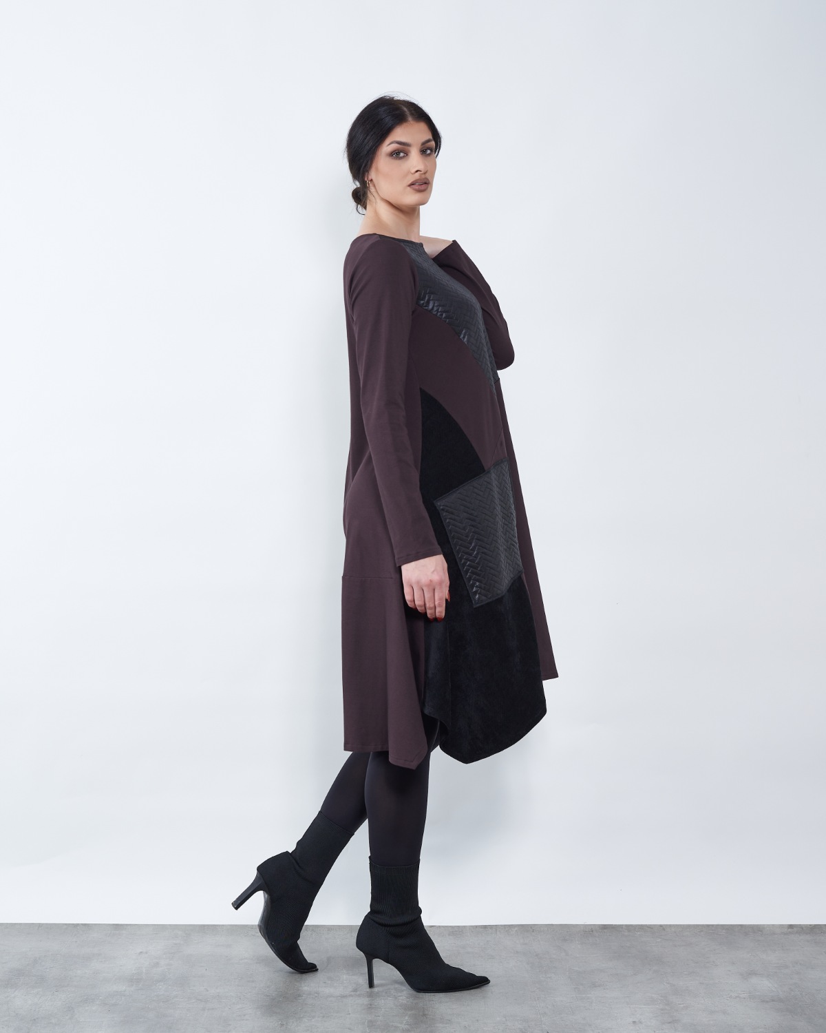 Haljina u gornjem dijelu prati liniju tijela , a u donjem se širi u blagi "A" te završava asimetrijom.