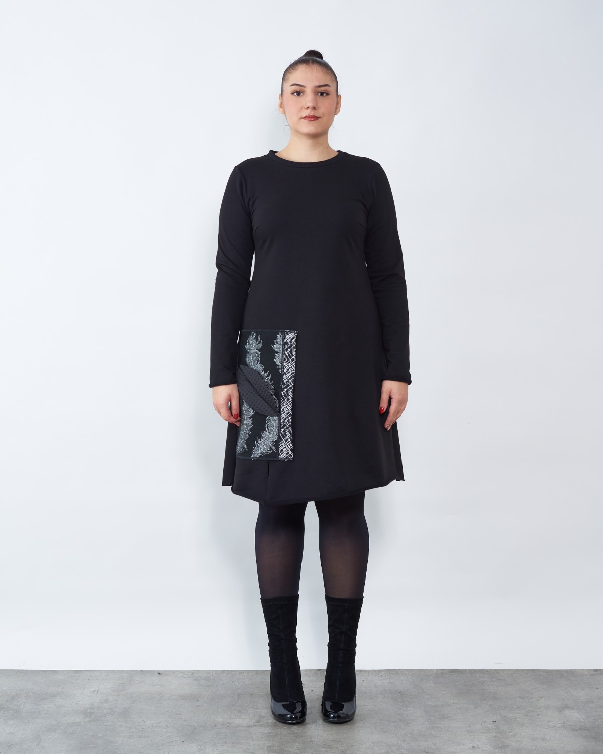 Crni pamuk sa elastinom krasi crno-bijeli umetak.