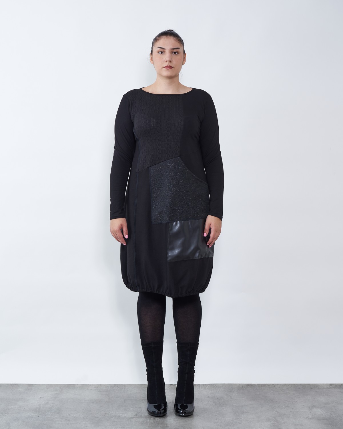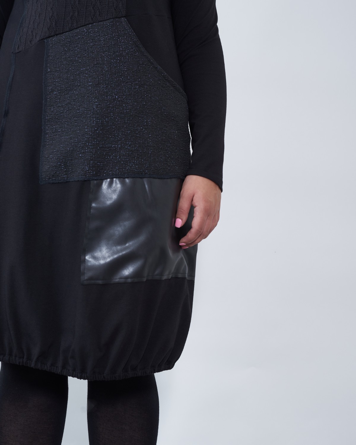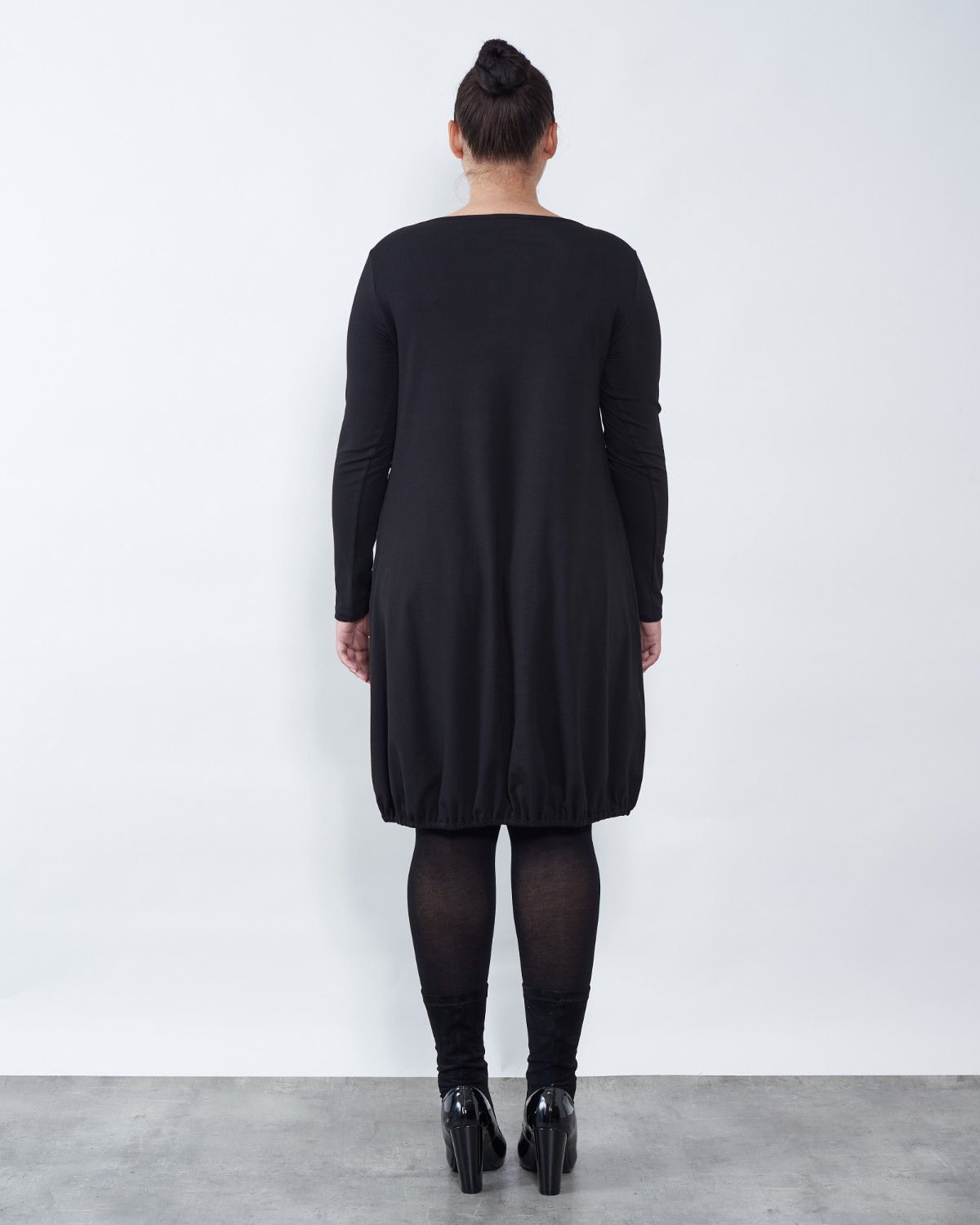 Haljina završava blago stisnuta gumicom.