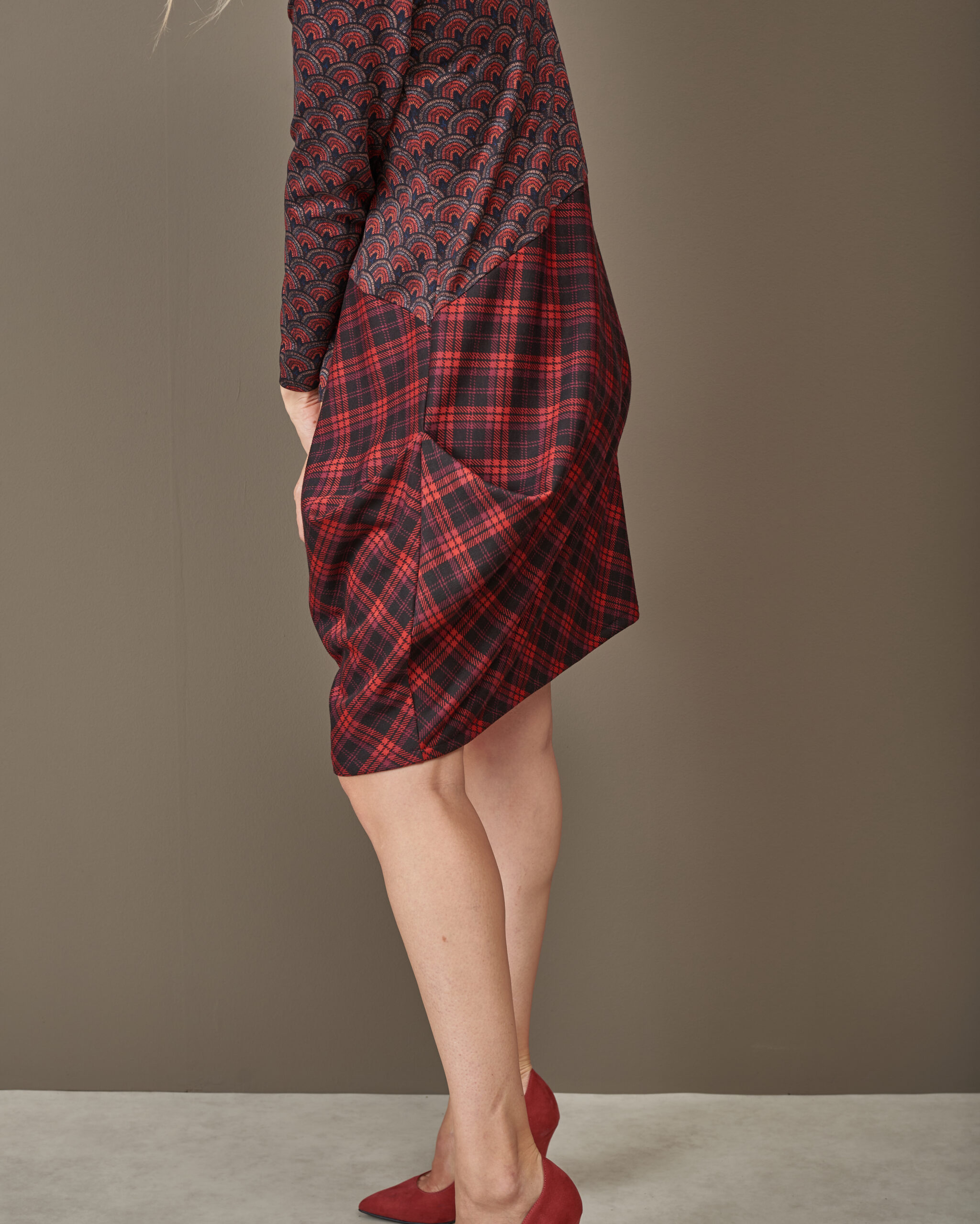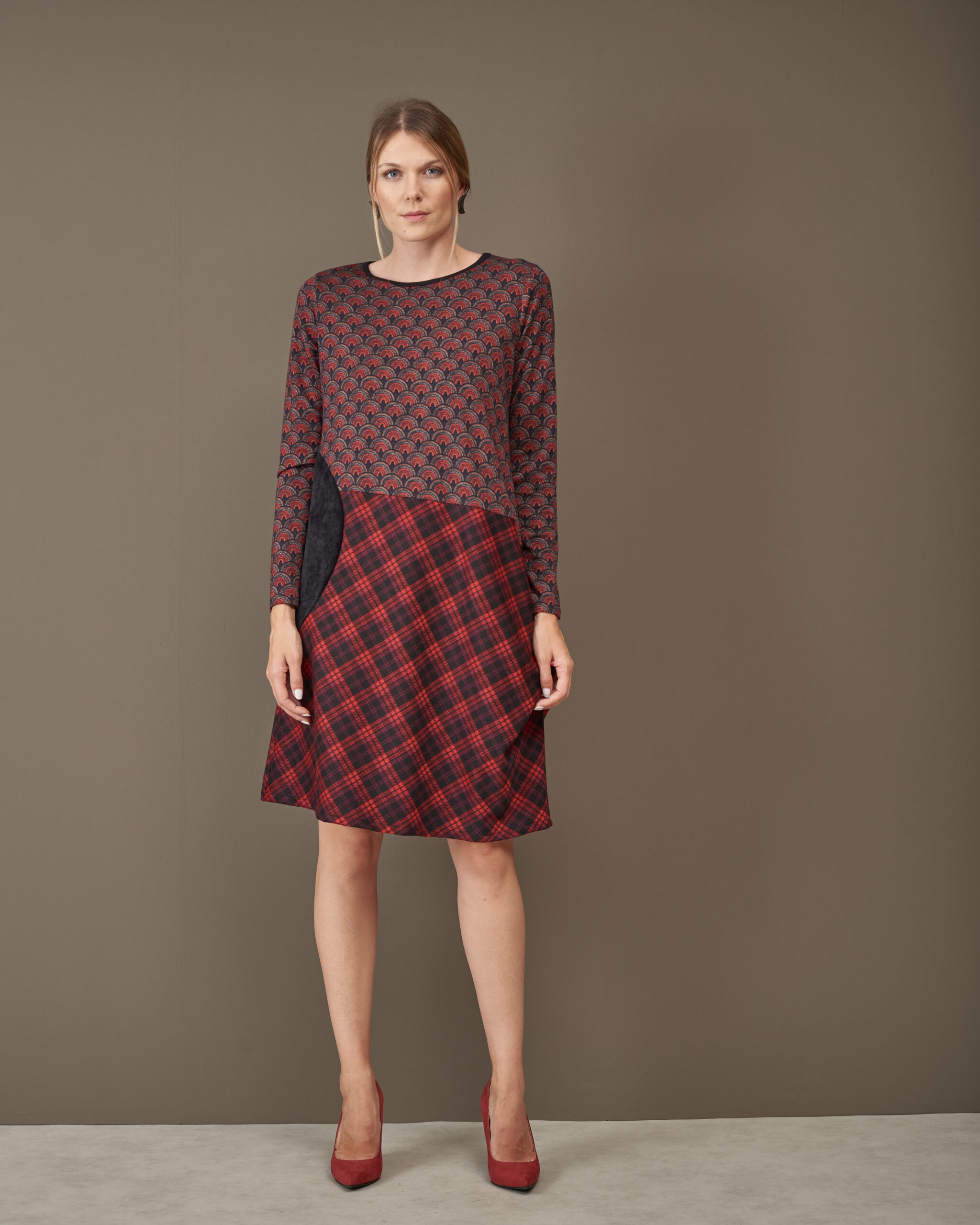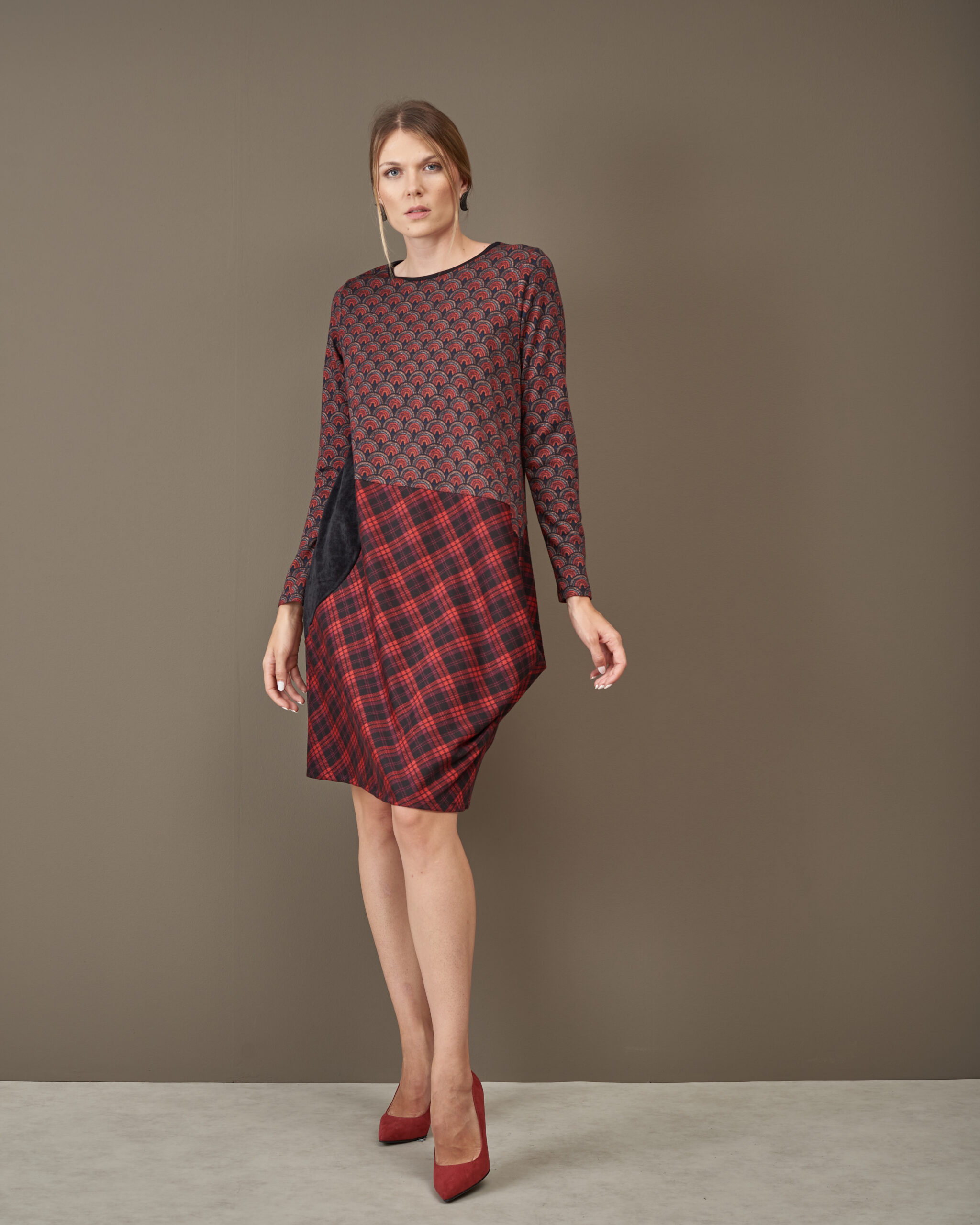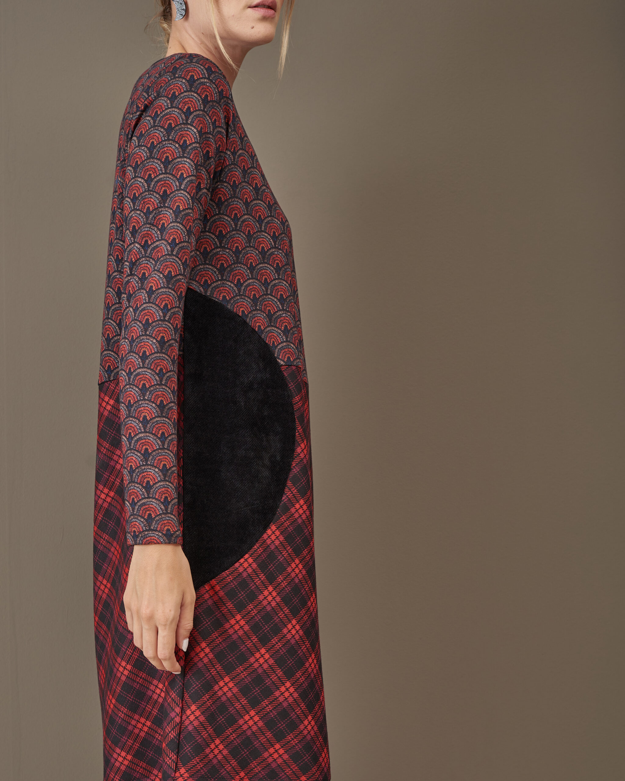 Zanimljivom je čini spoj dvaju materijala u crvenim nijansama, te imitacija džepa od crnoga samta.
