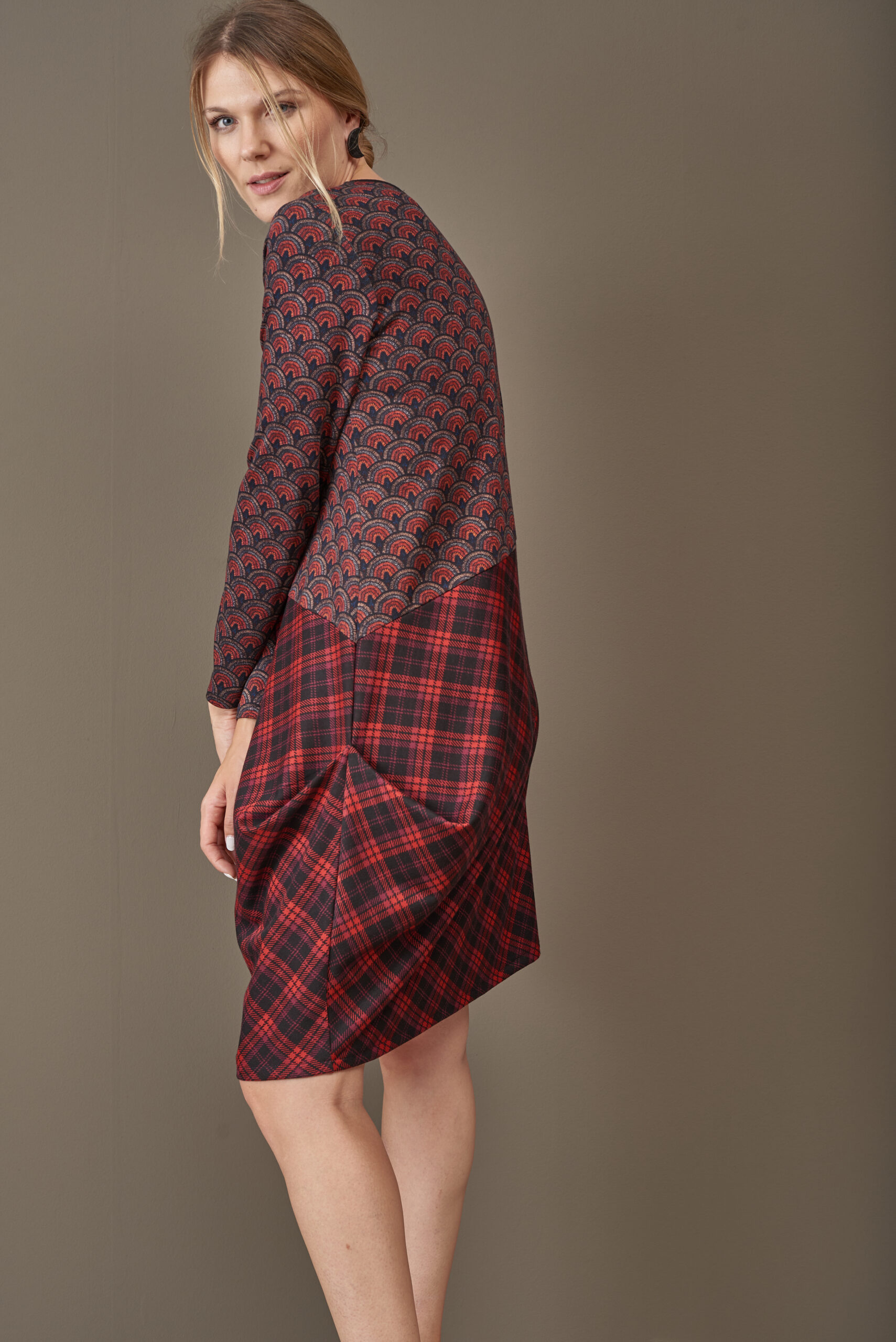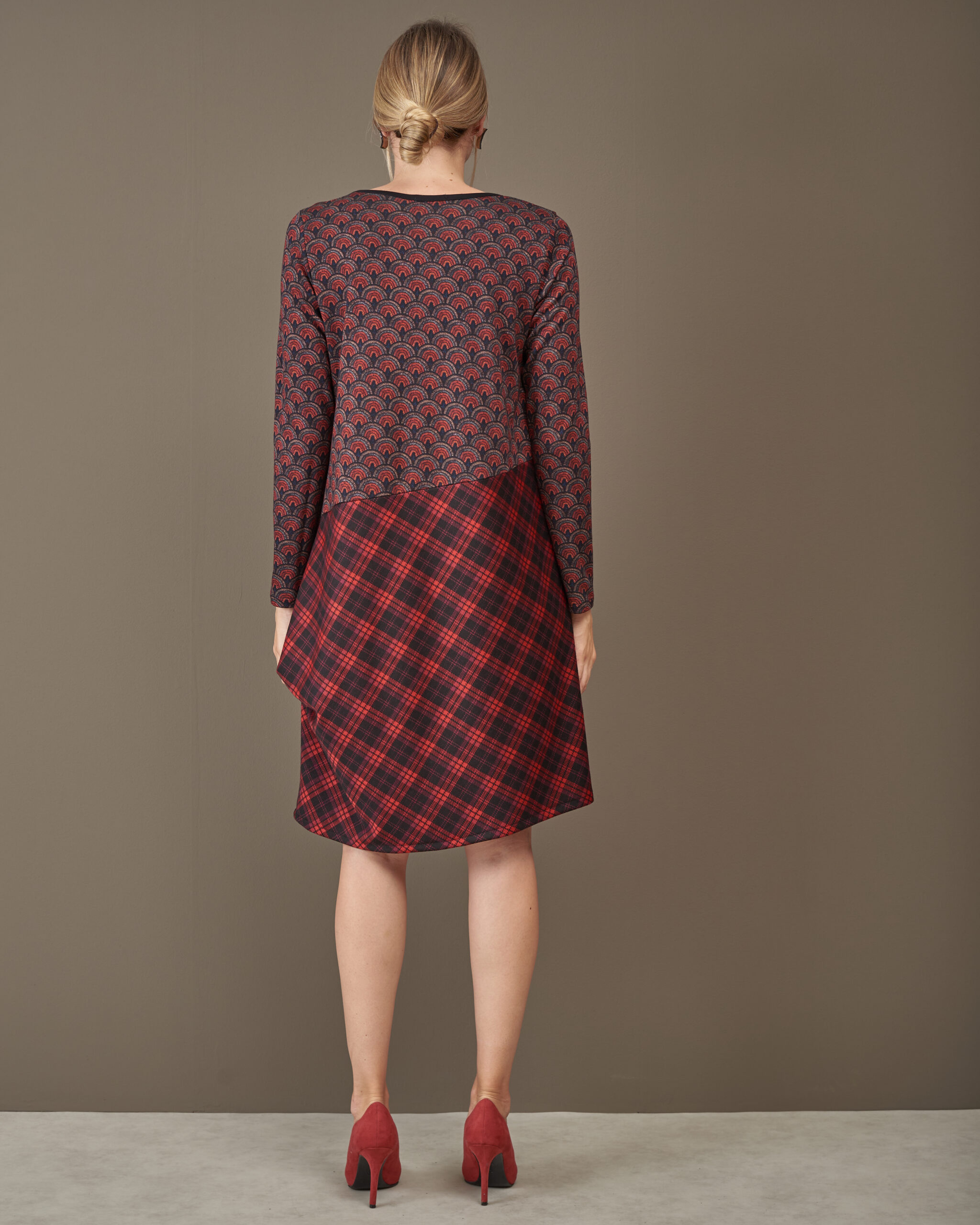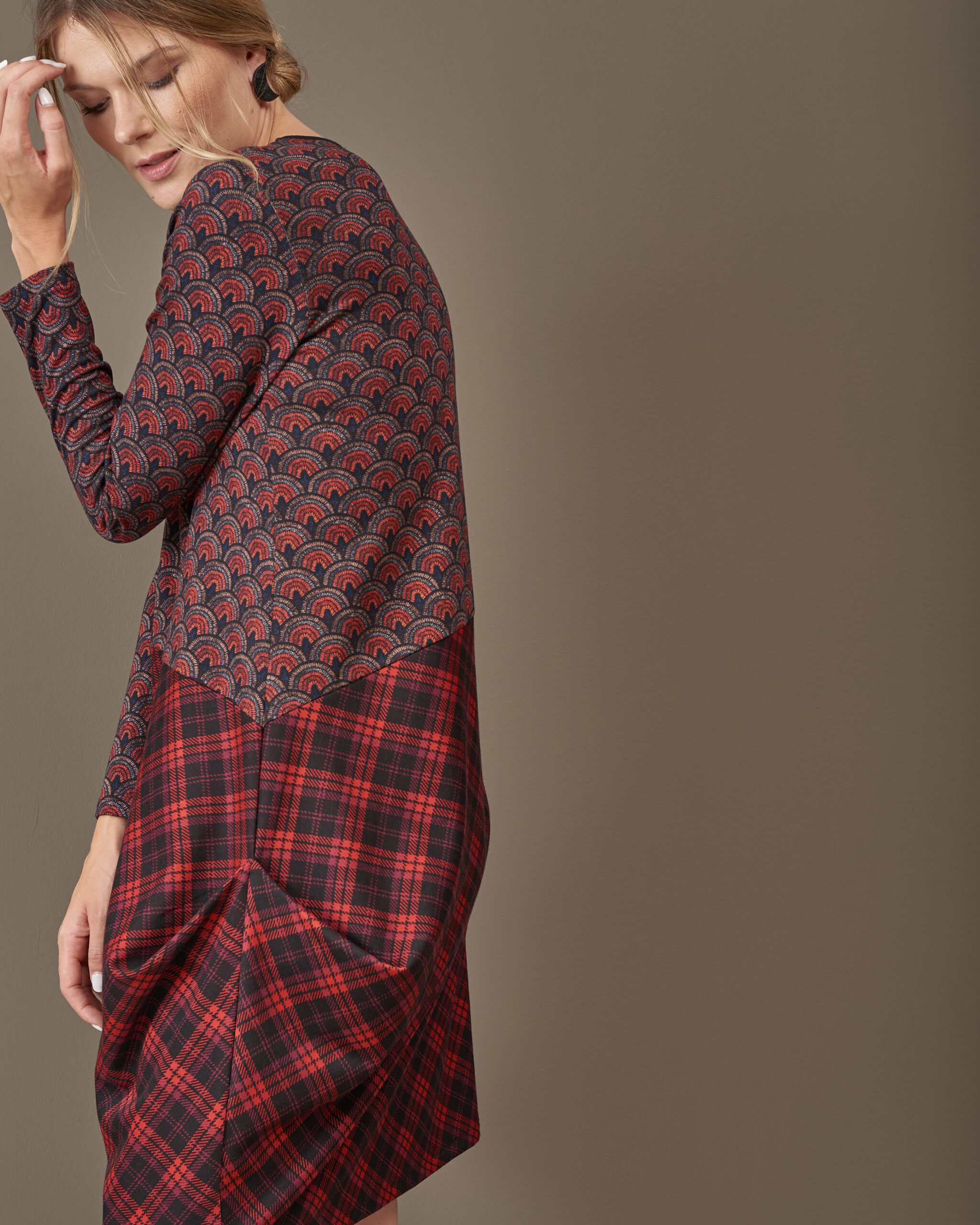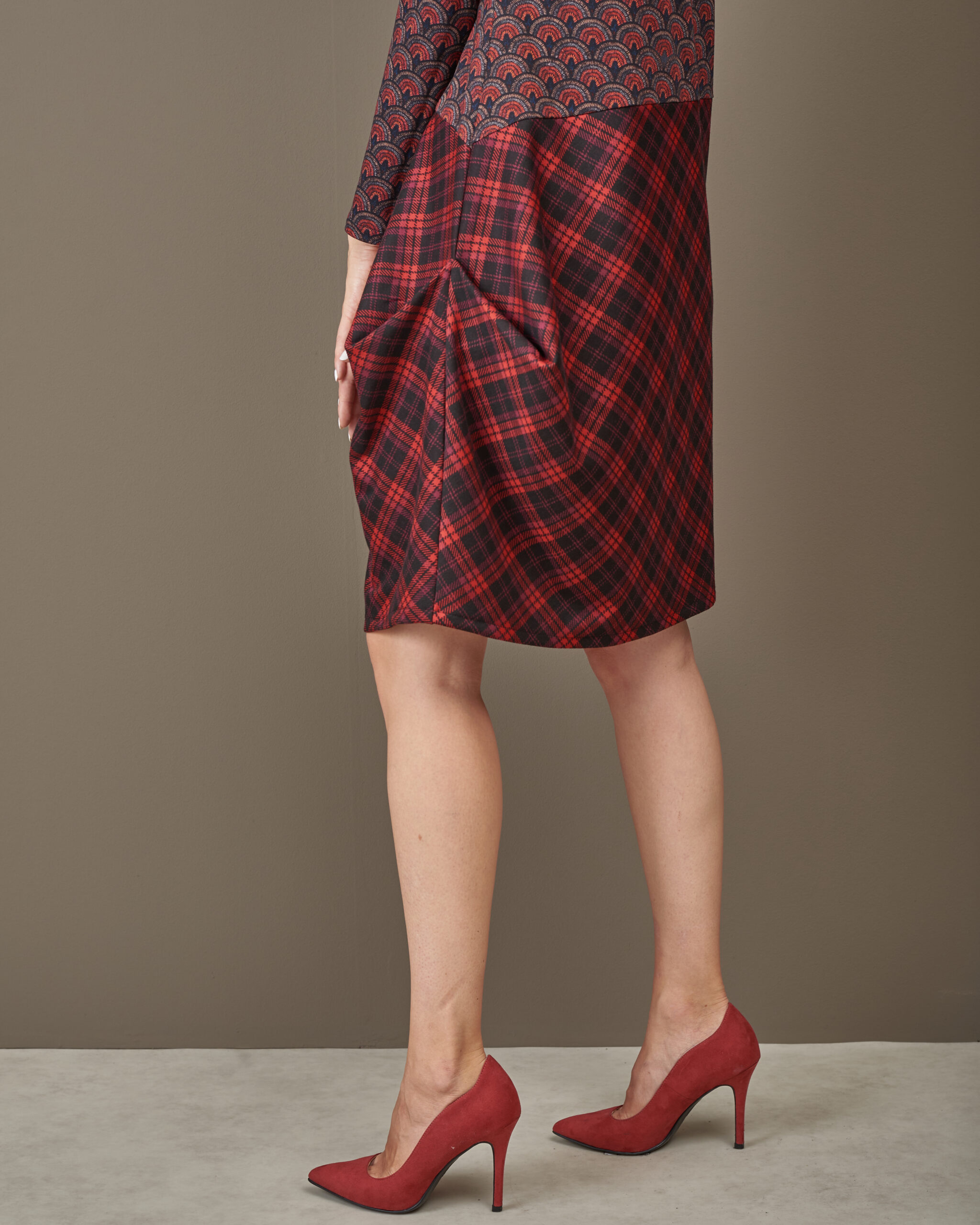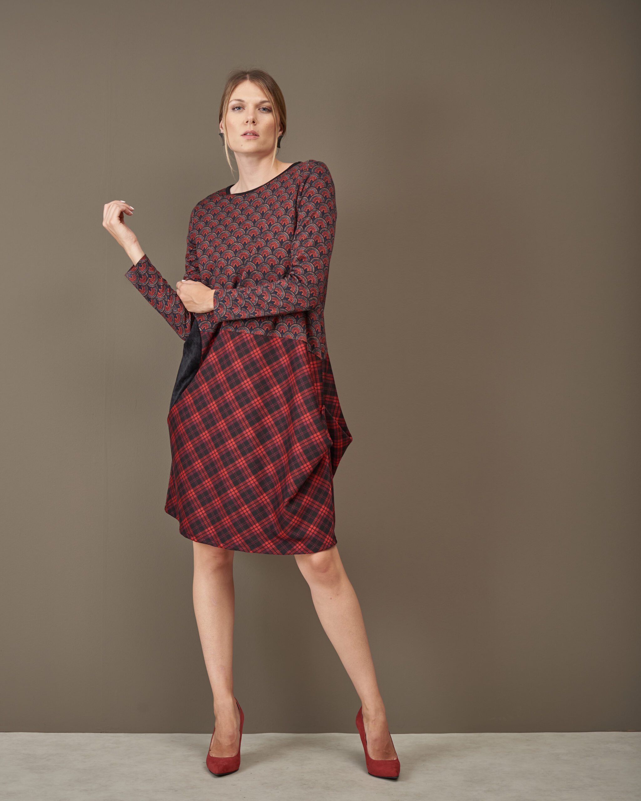 Zanimljivom je čini spoj dvaju materijala u crvenim nijansama, te imitacija džepa od crnoga samta.