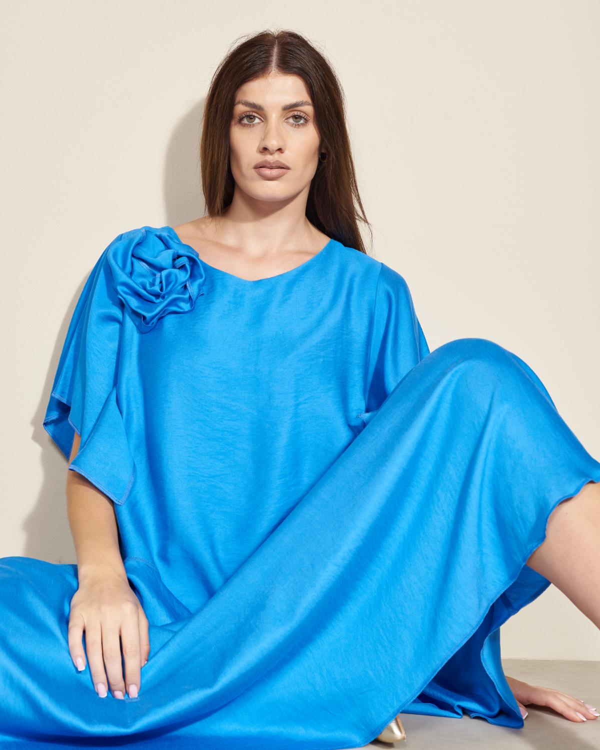 Haljinu krasi ukras u obliku ruže.