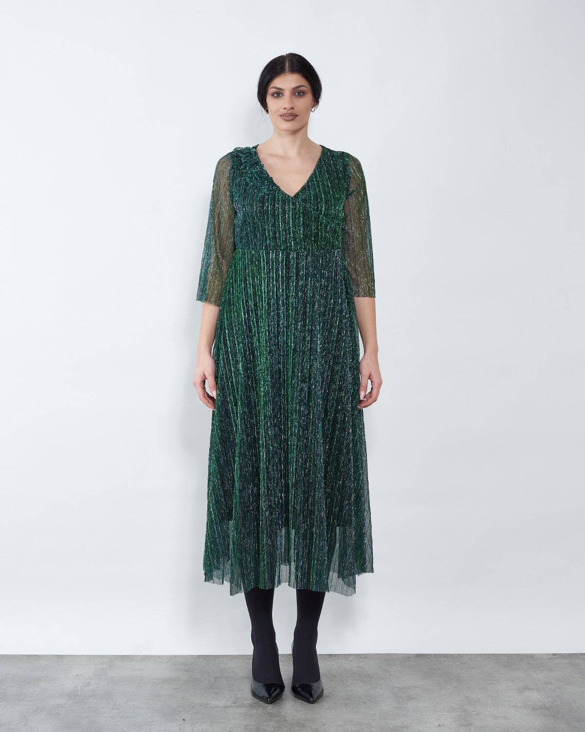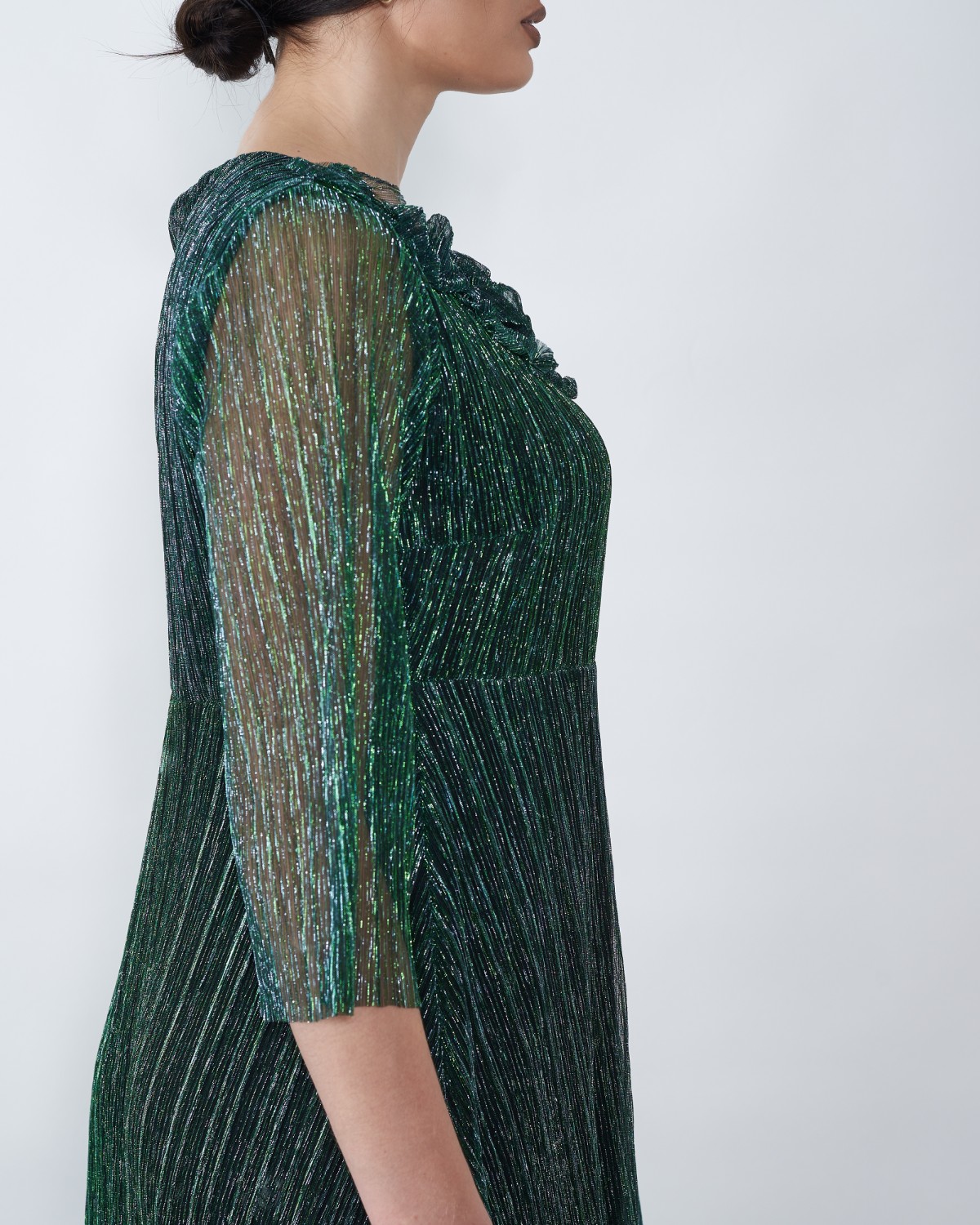Gornji dio haljine je na "V" izrez sa "fiksnim" preklopom.