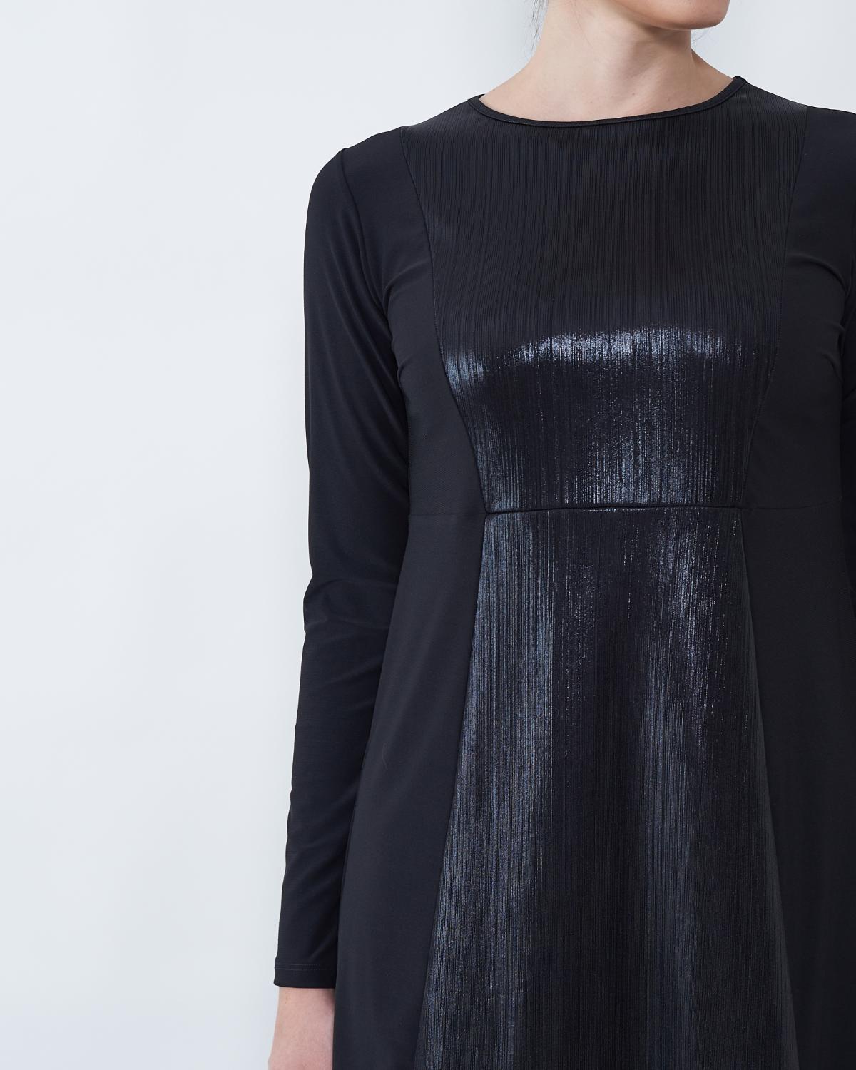 Model rezan ispod prsiju krasi sjajni umetak u prednjem dijelu haljine.