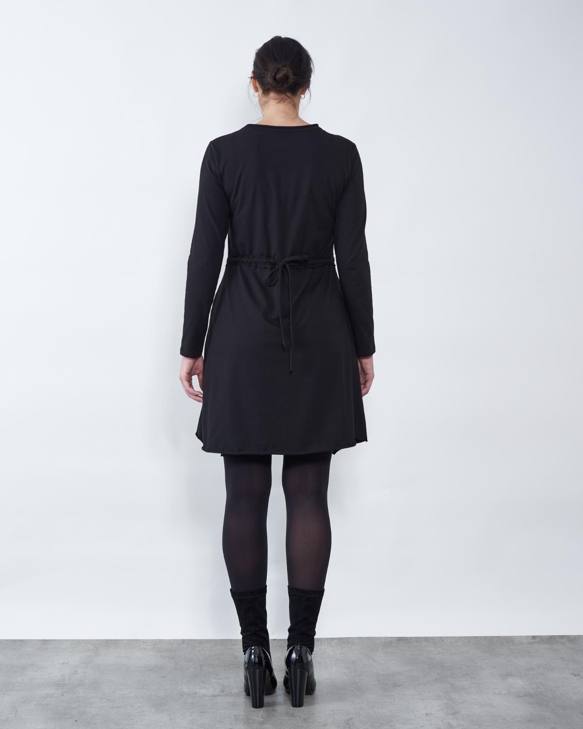 U stražnjem dijelu haljina ima vezicu pomoću koje se može regulirati širina.