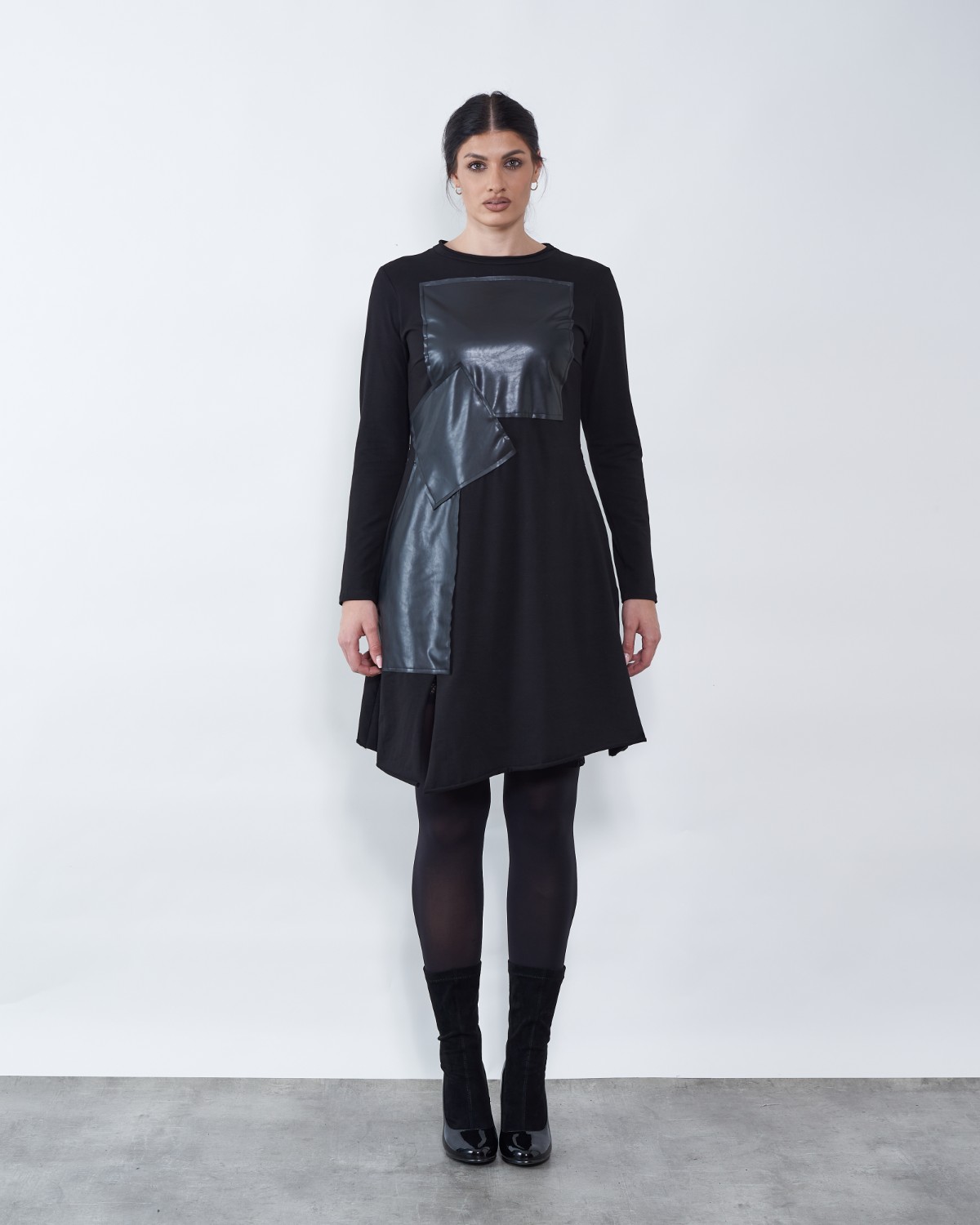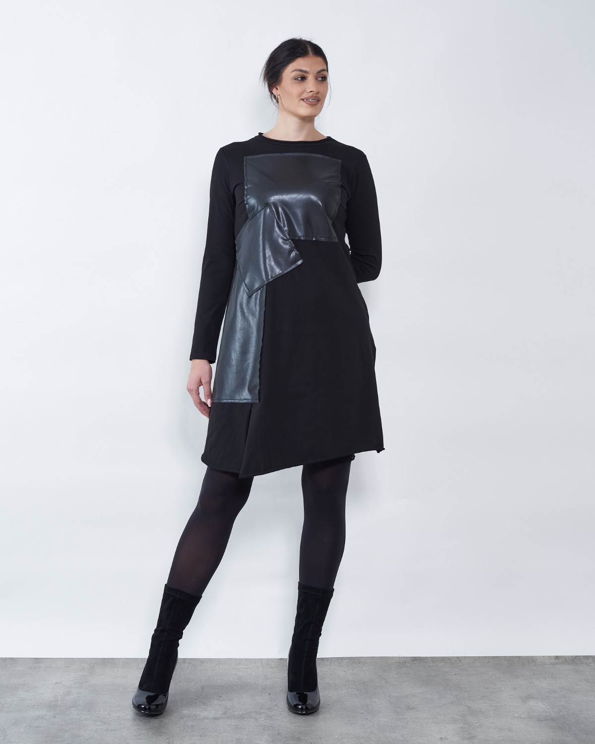 Crni pamuk sa elastinom krase dodaci od glatke eko kože.
