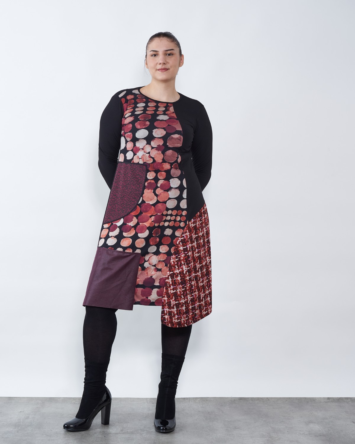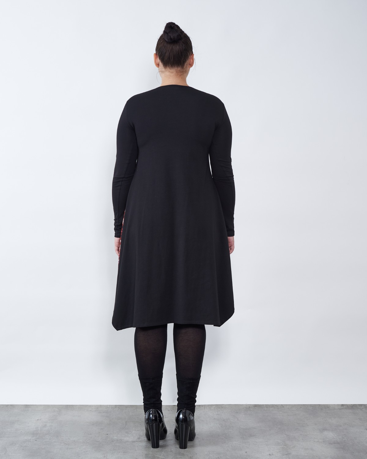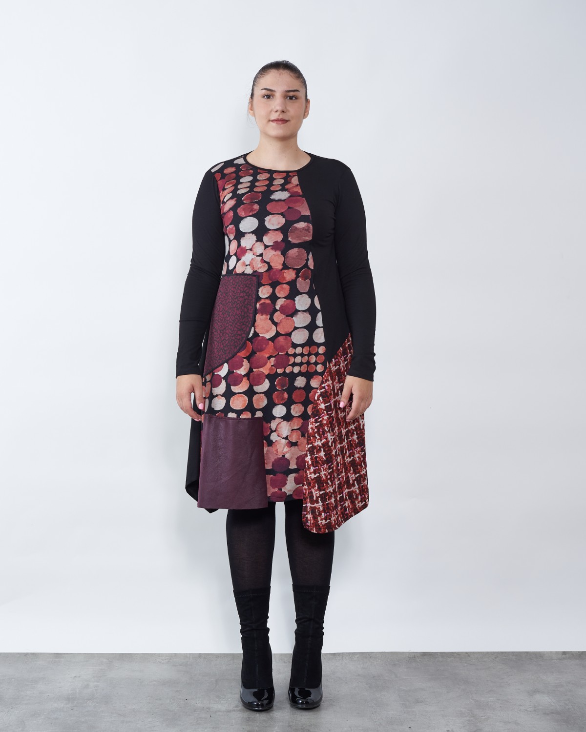 Haljina dugih rukava sa asimetrijom u donjem dijelu.