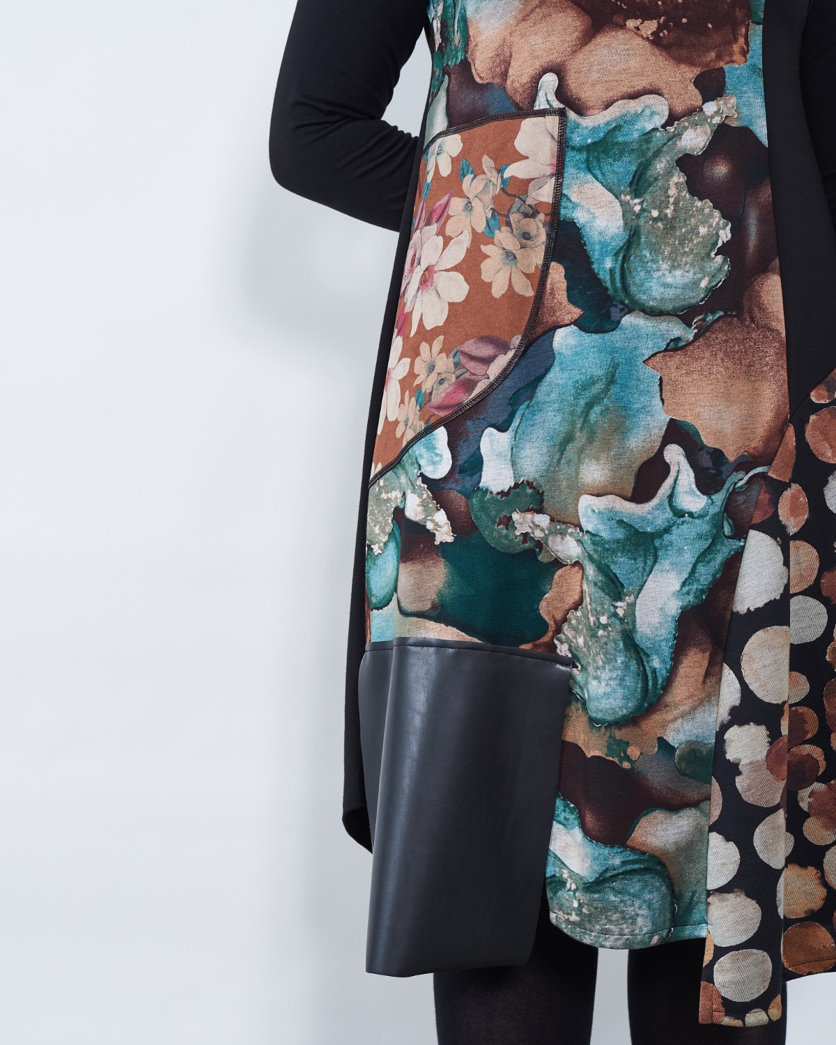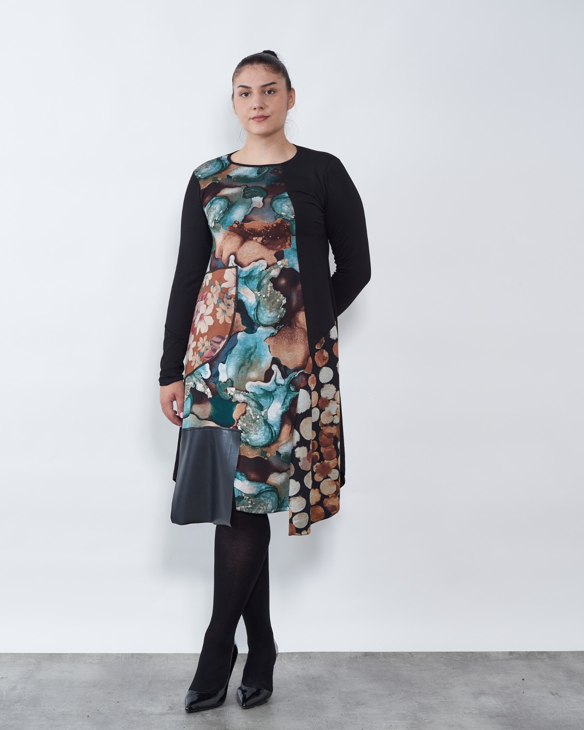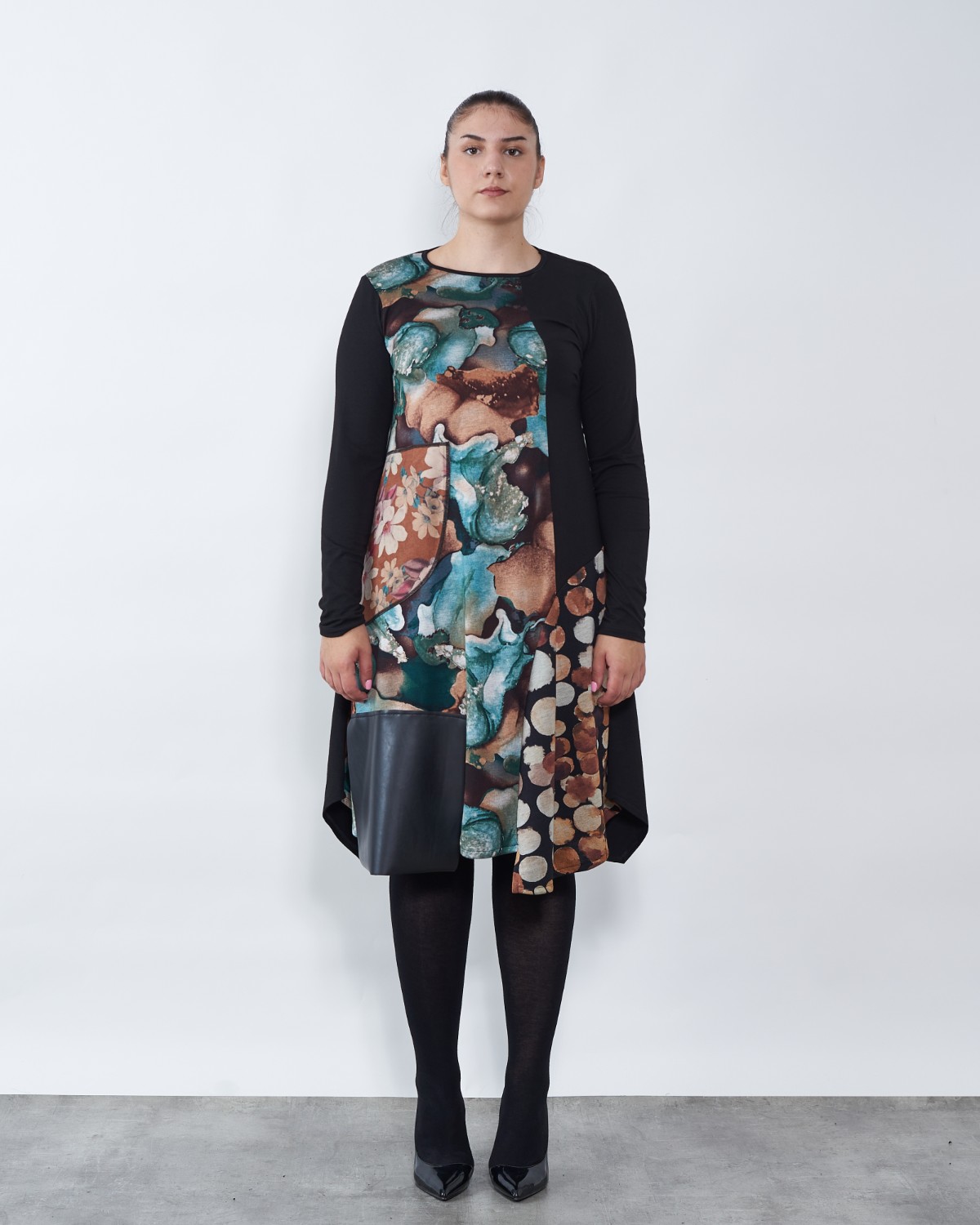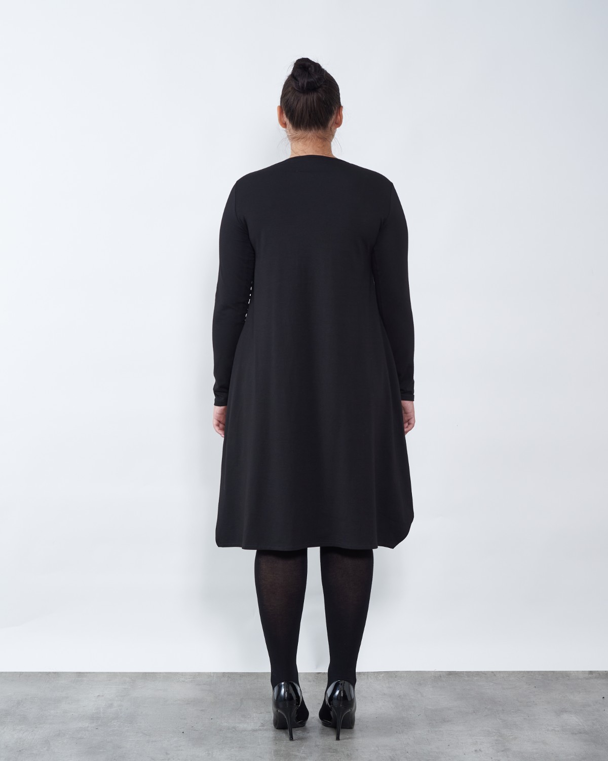 Haljina dugih rukava sa asimetrijom u donjem dijelu.