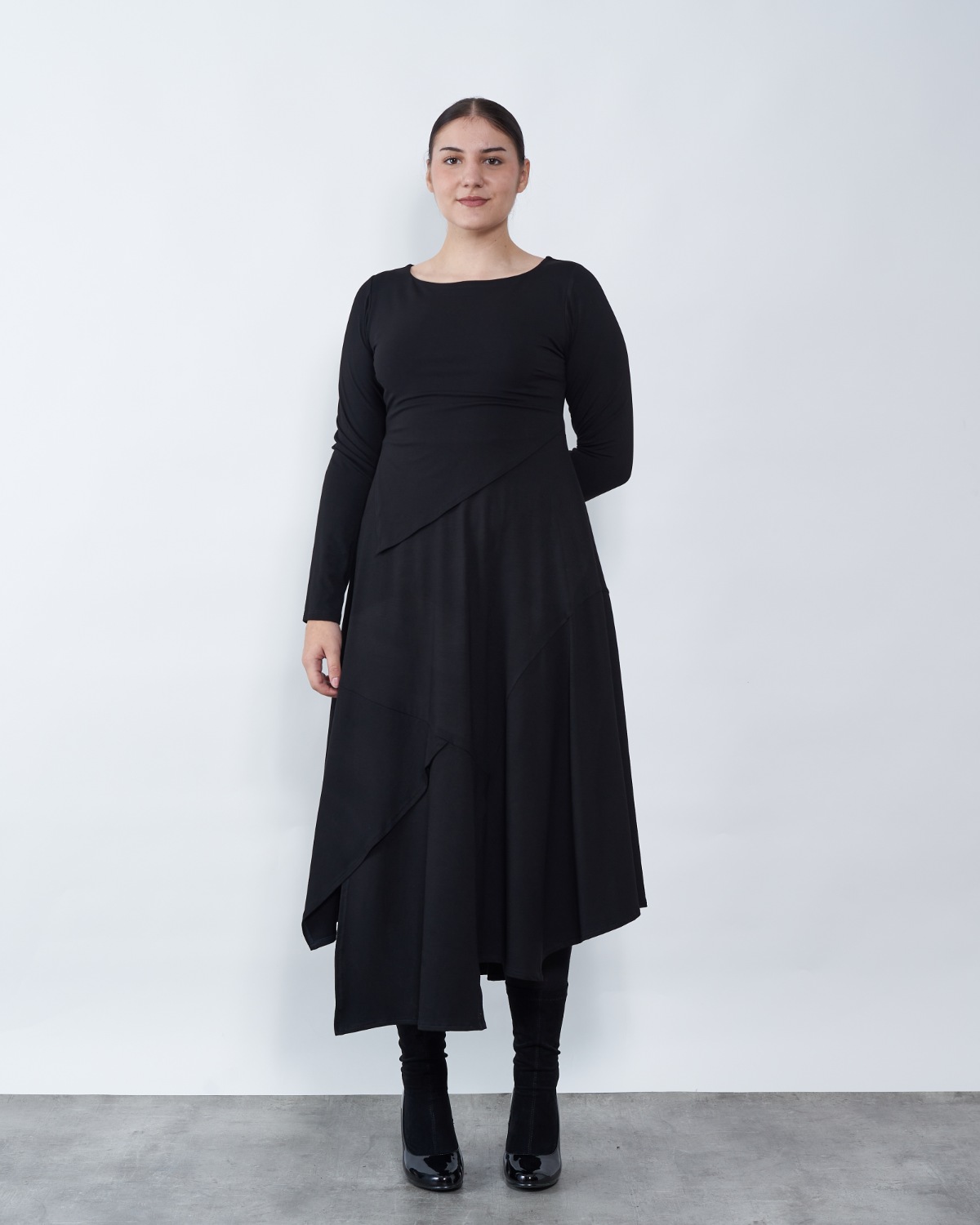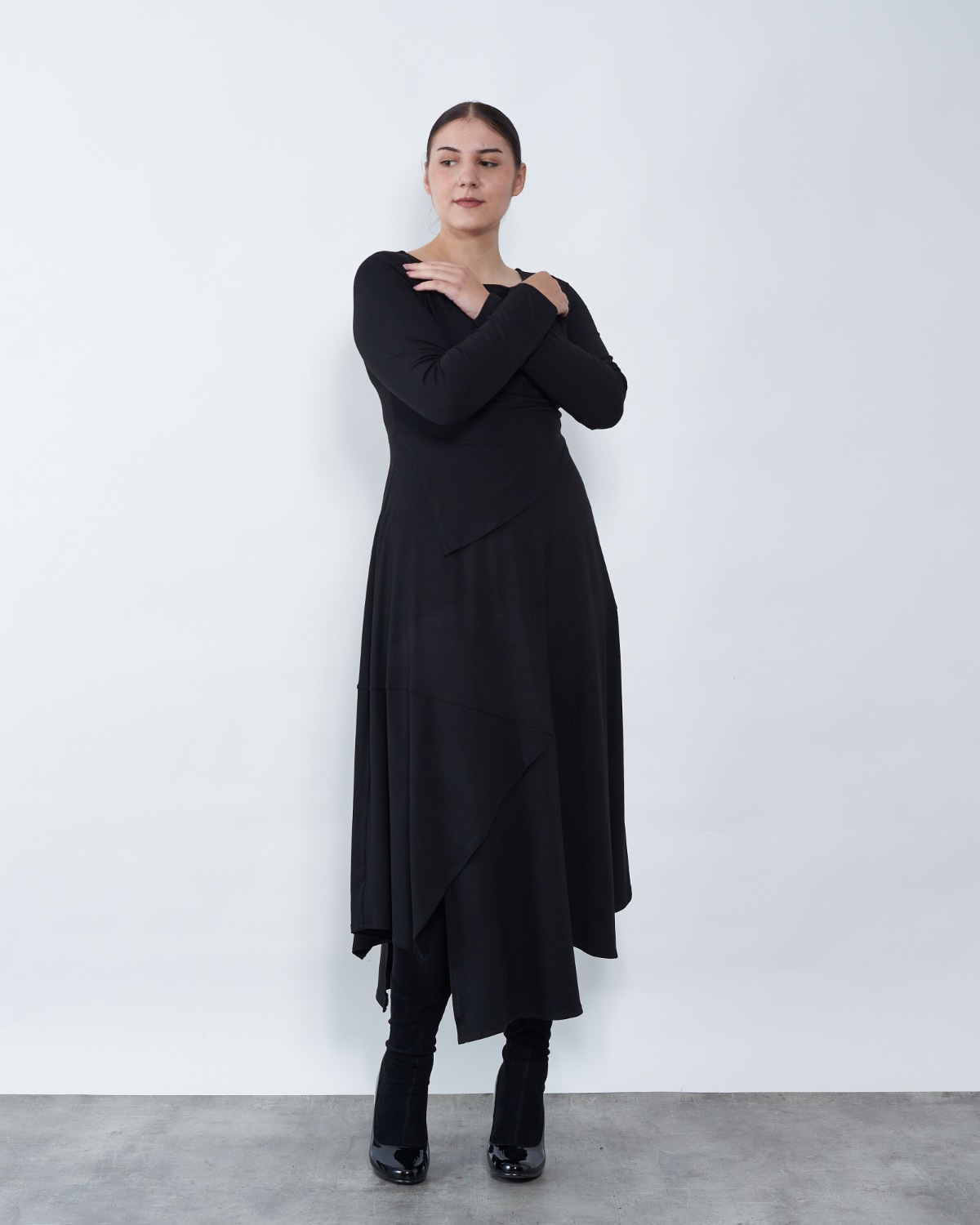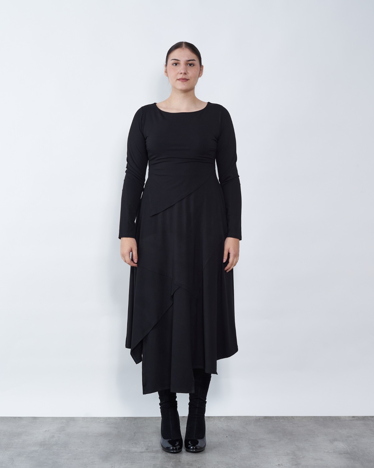 Model A kroja od ugodne viskoze sa elastinom završava asimetrijom.