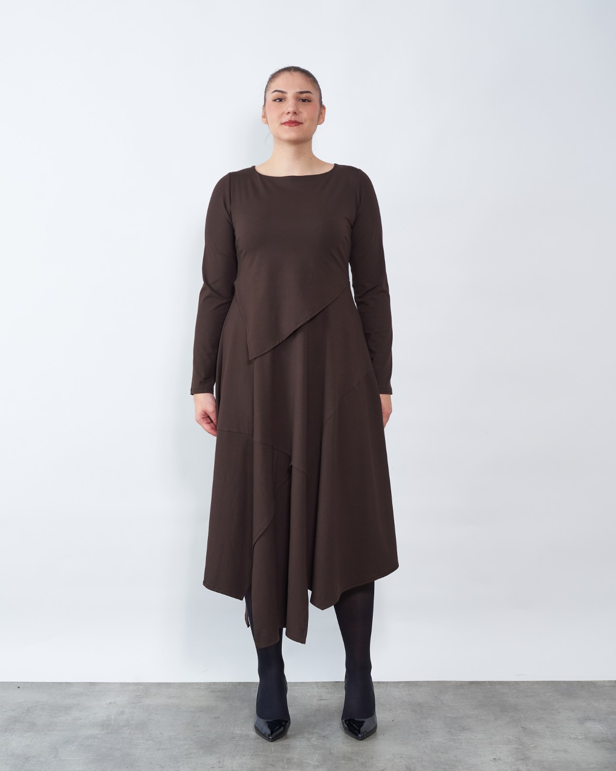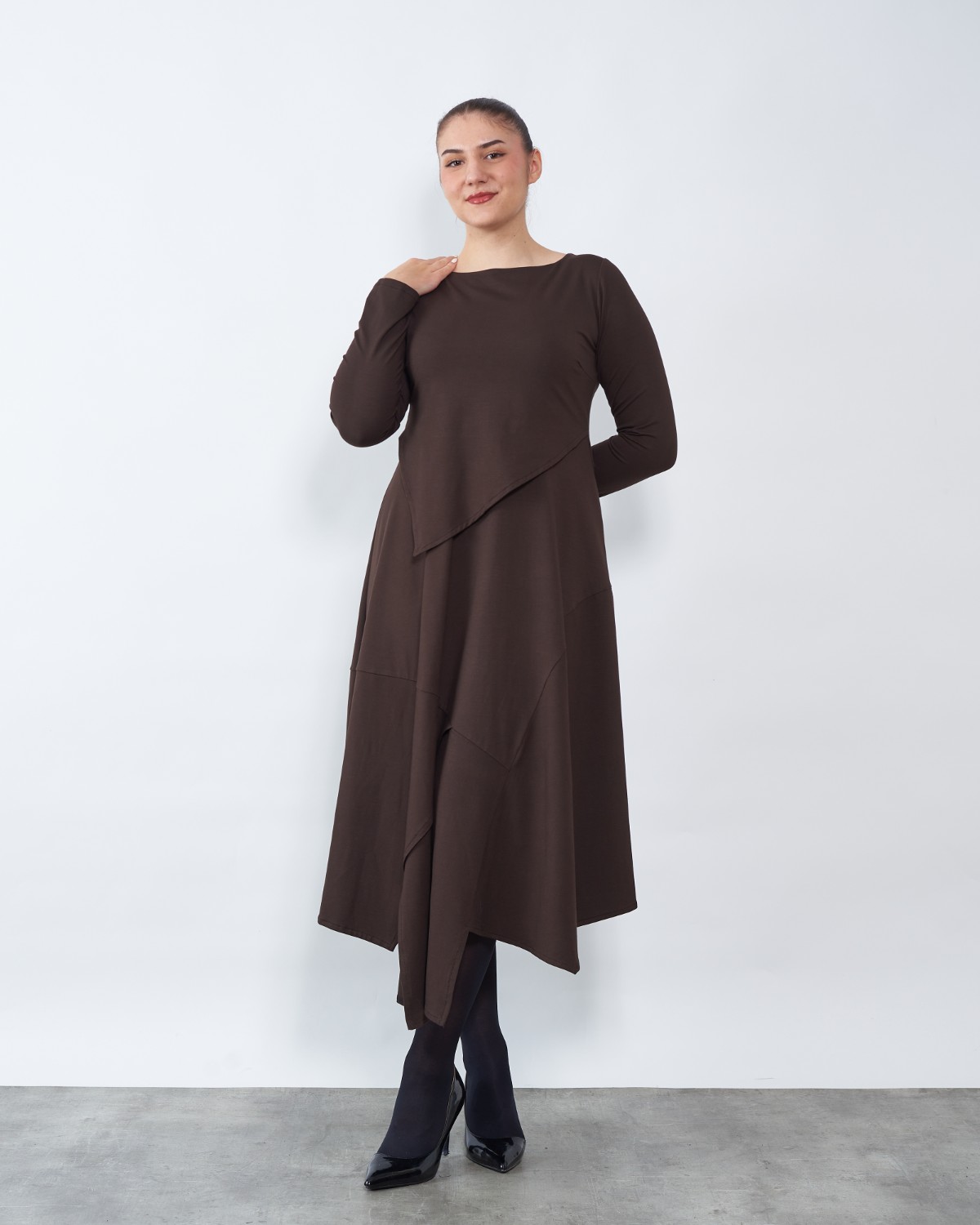 Model A kroja od ugodne viskoze sa elastinom završava asimetrijom.