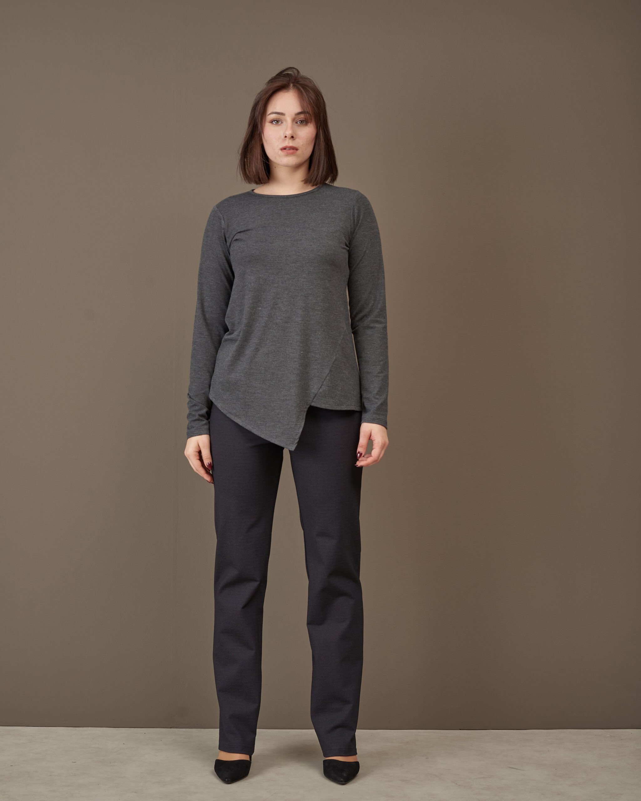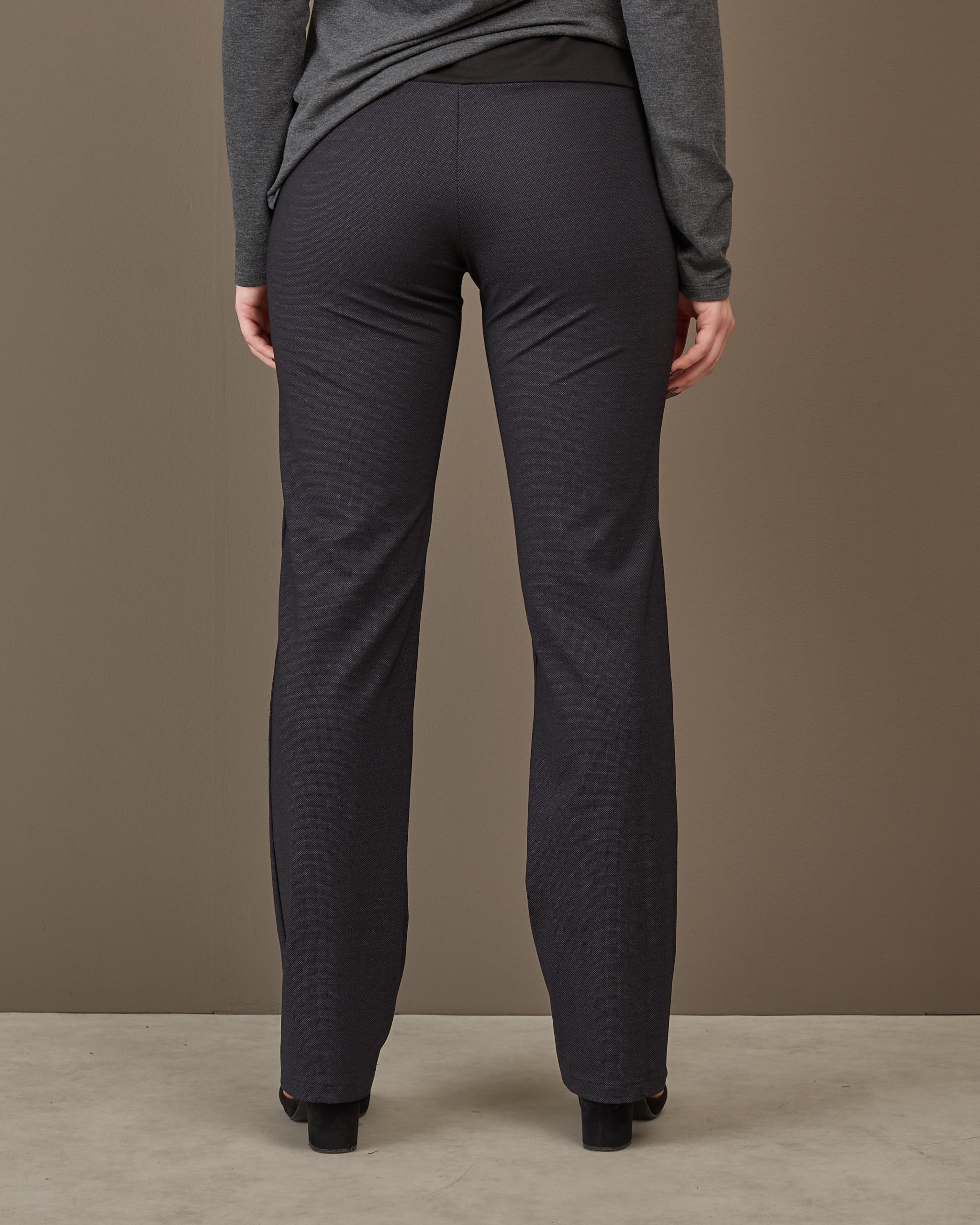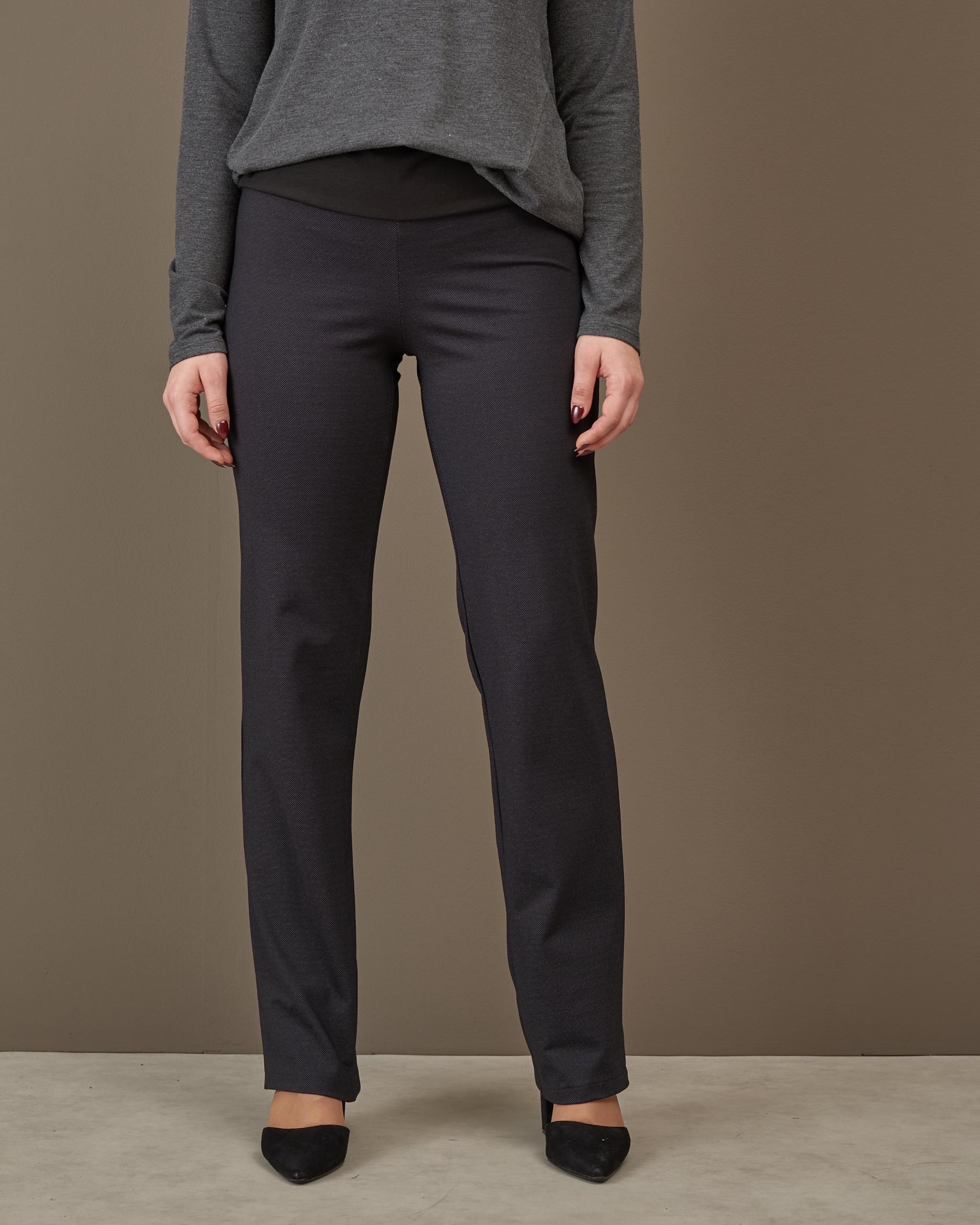 Hlače ravnog kroja sa širokom pasicom u struku.