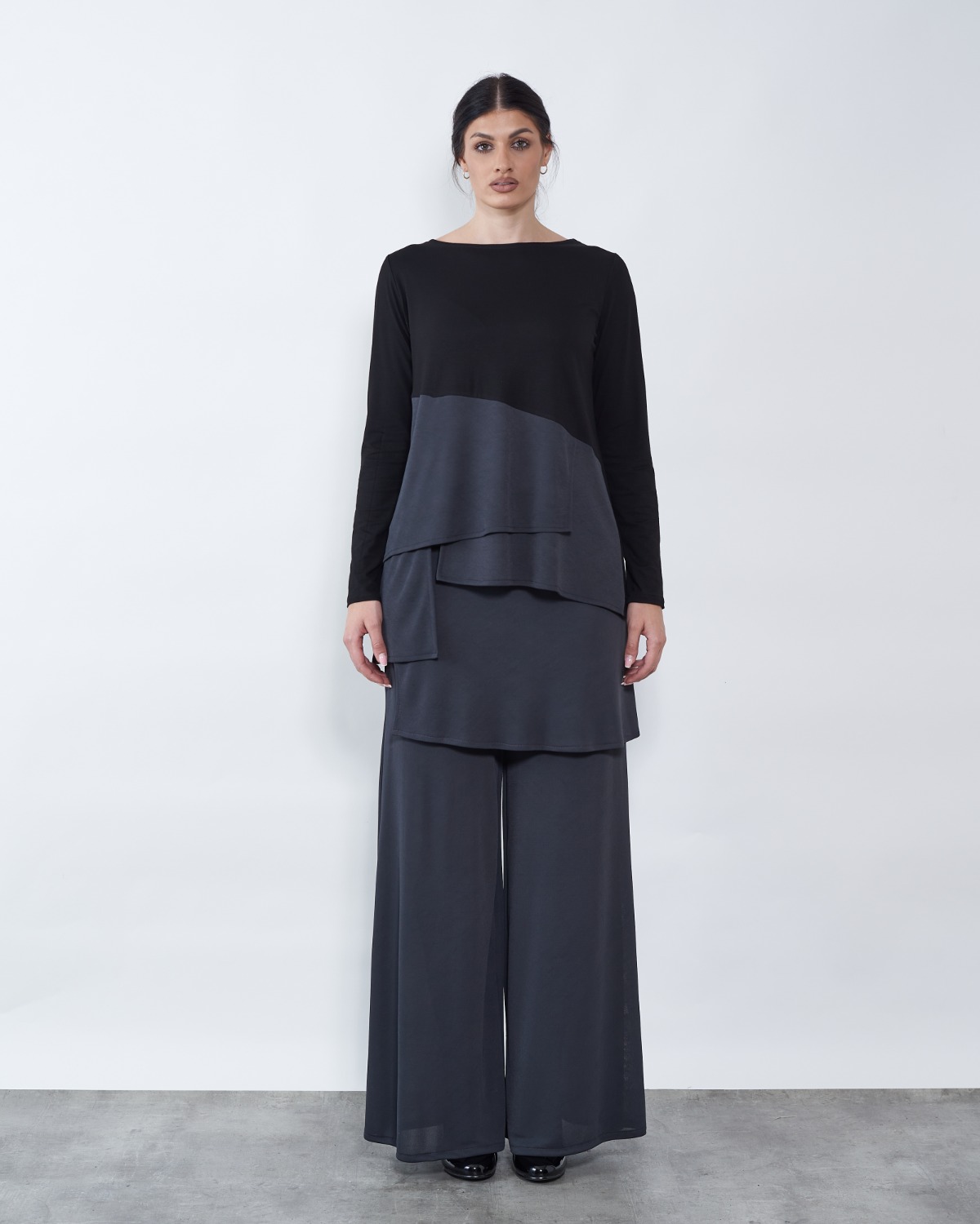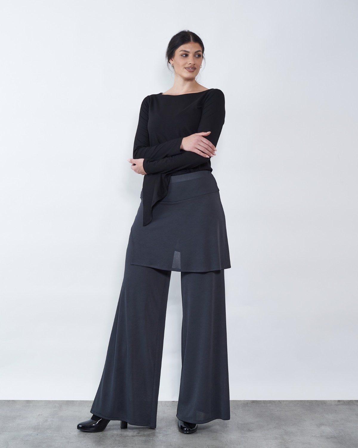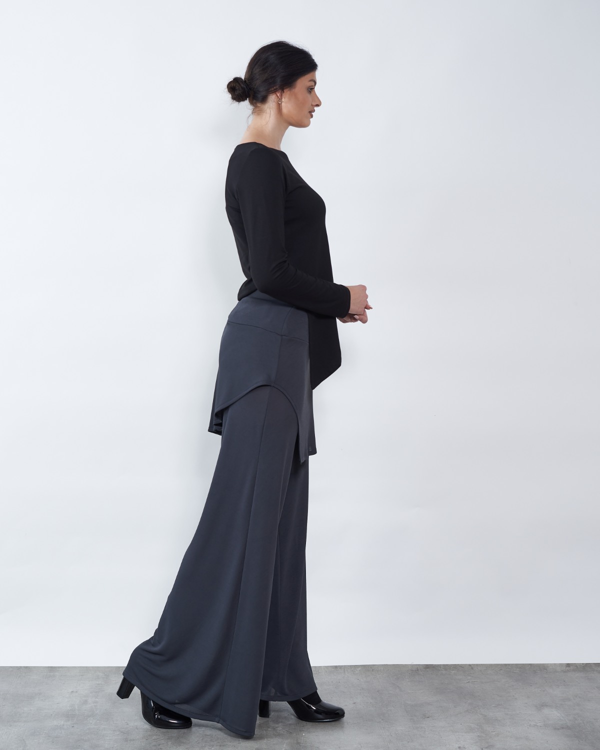 Posebnost hlača je dodatak koji lagano podsjeća na kraću suknju.