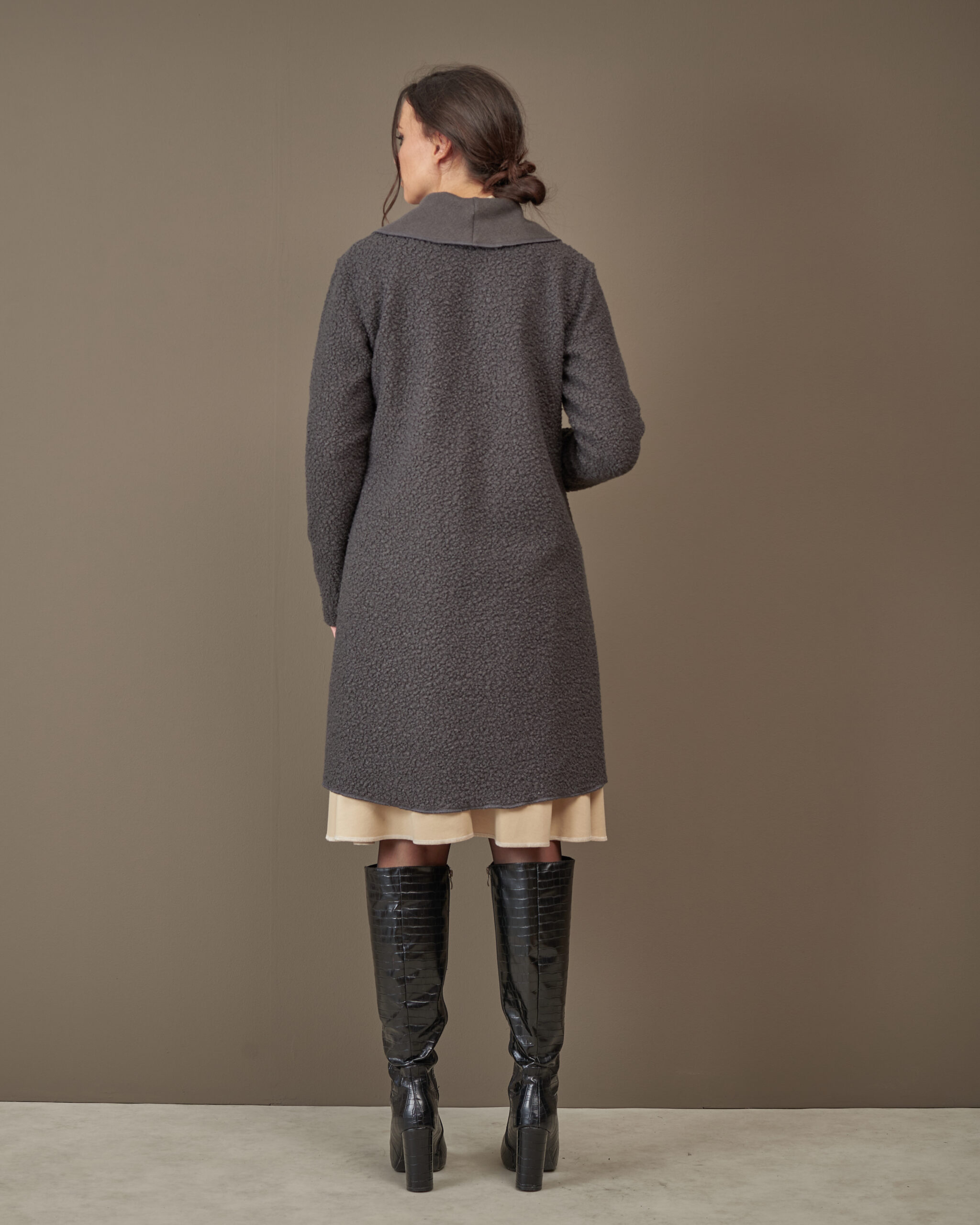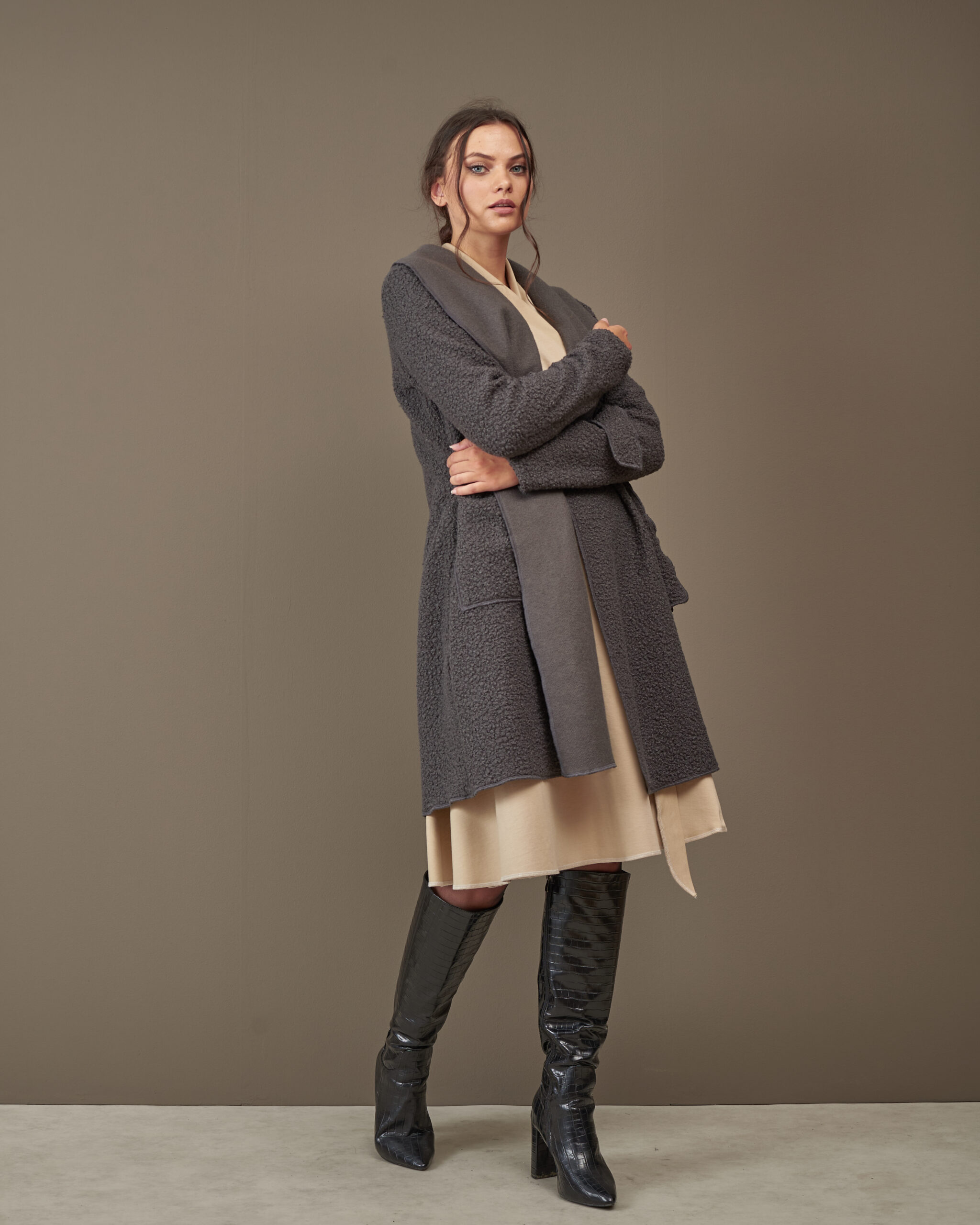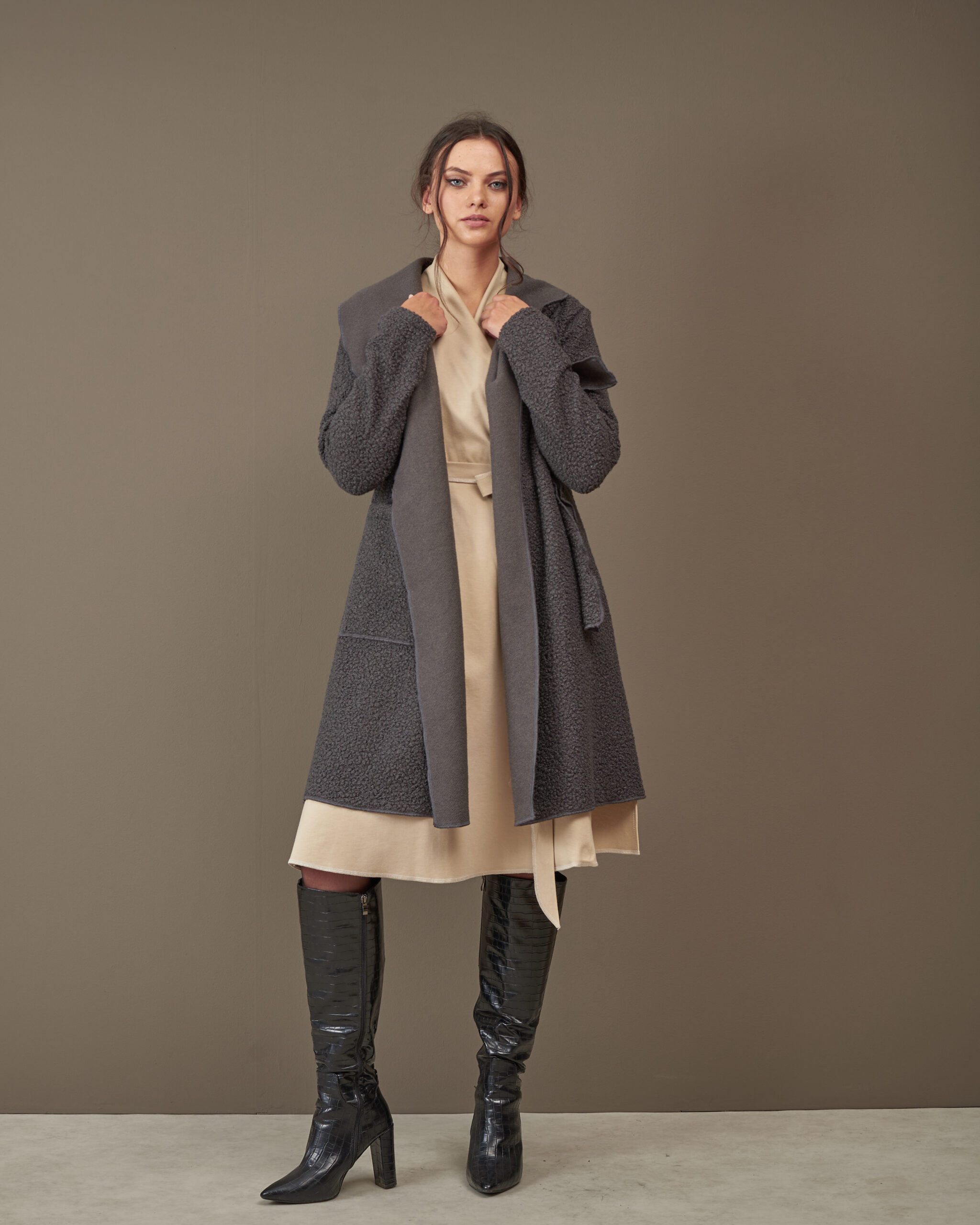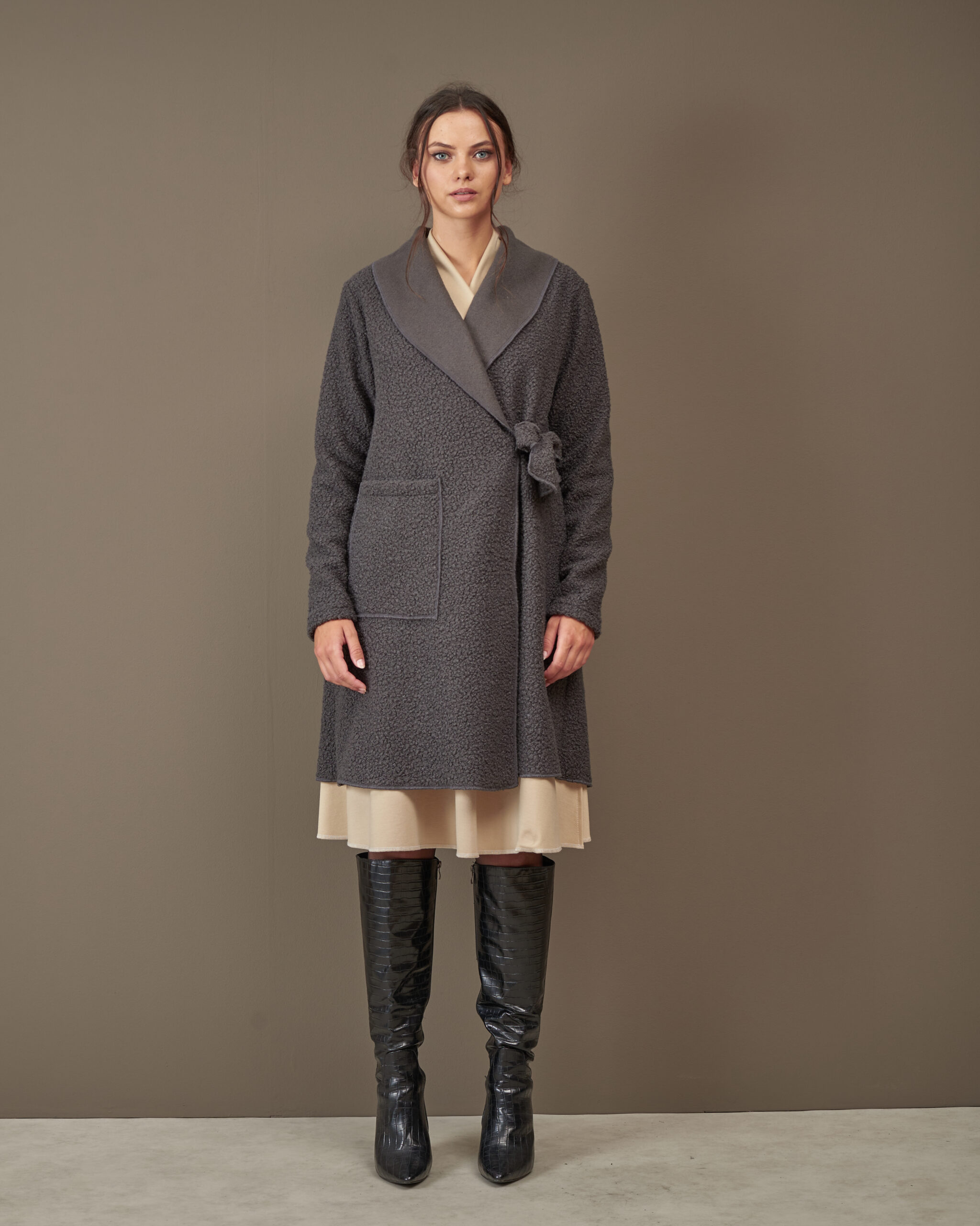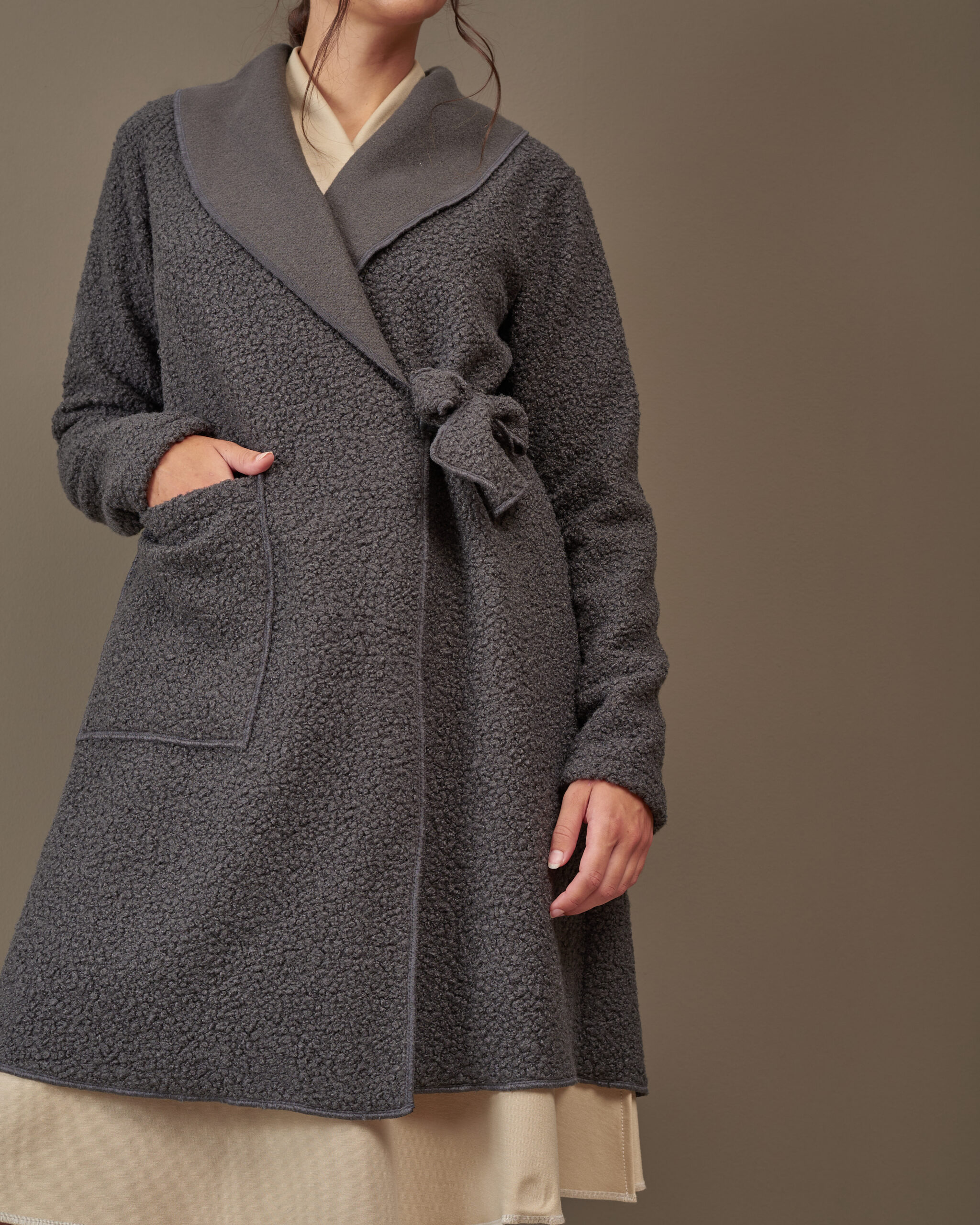 Ravni kroj u području struka ima dvije trake pomoću kojih se može nositi zakopčan.