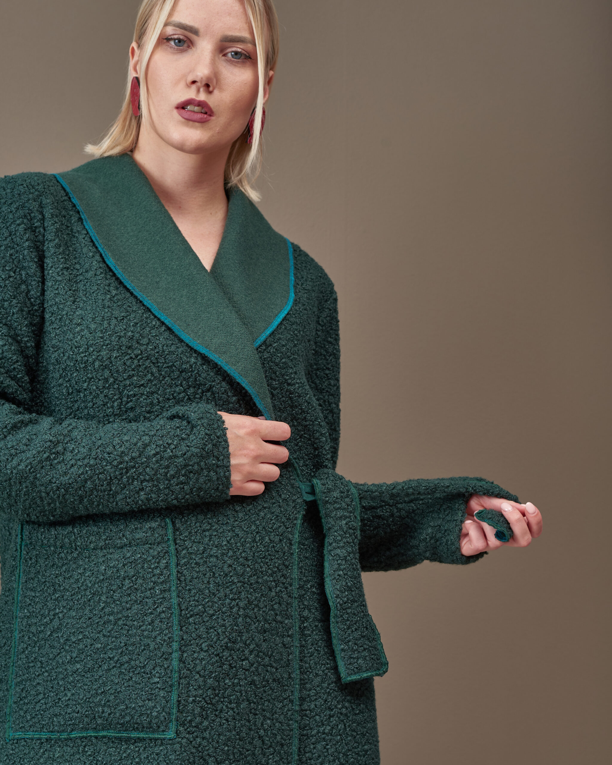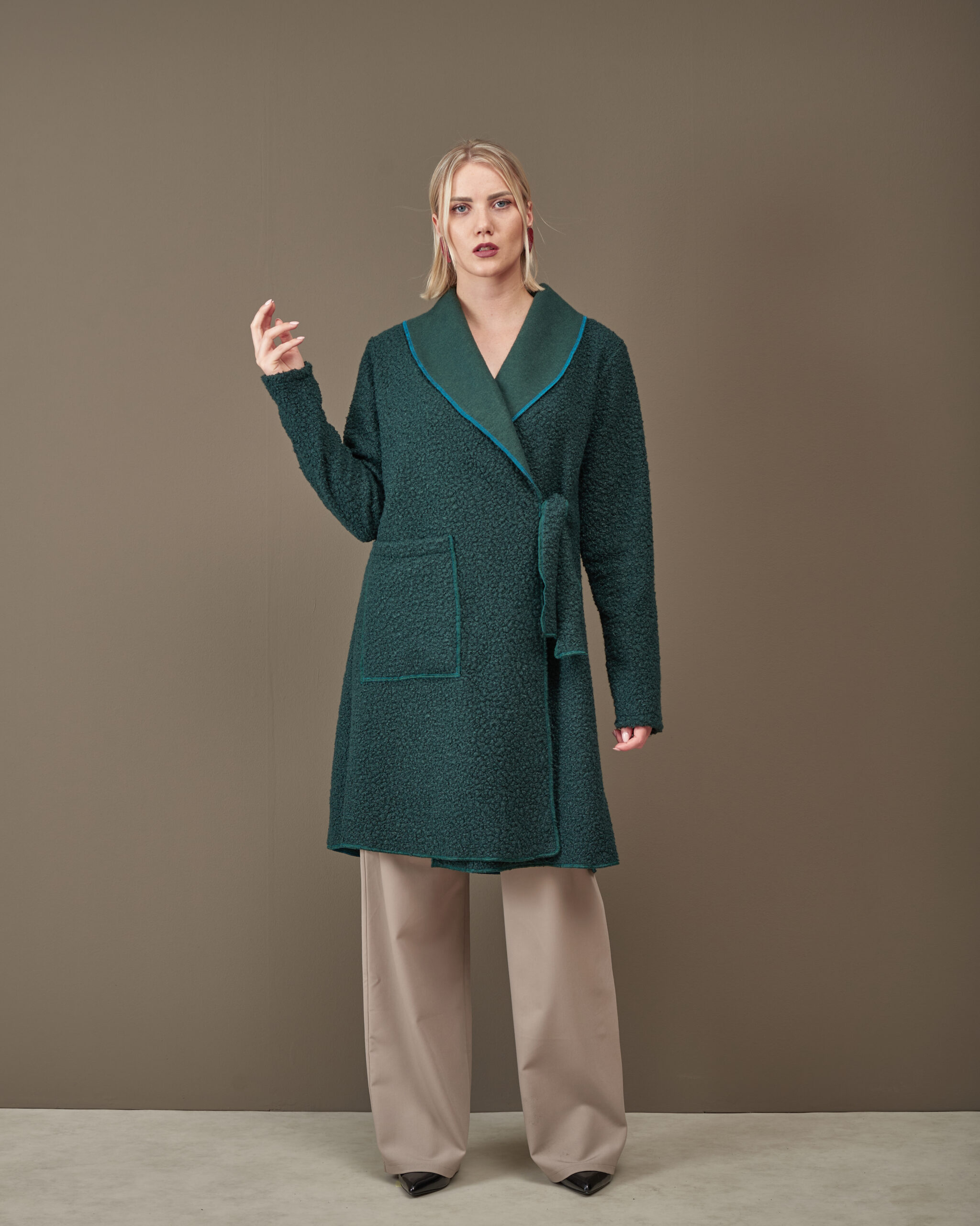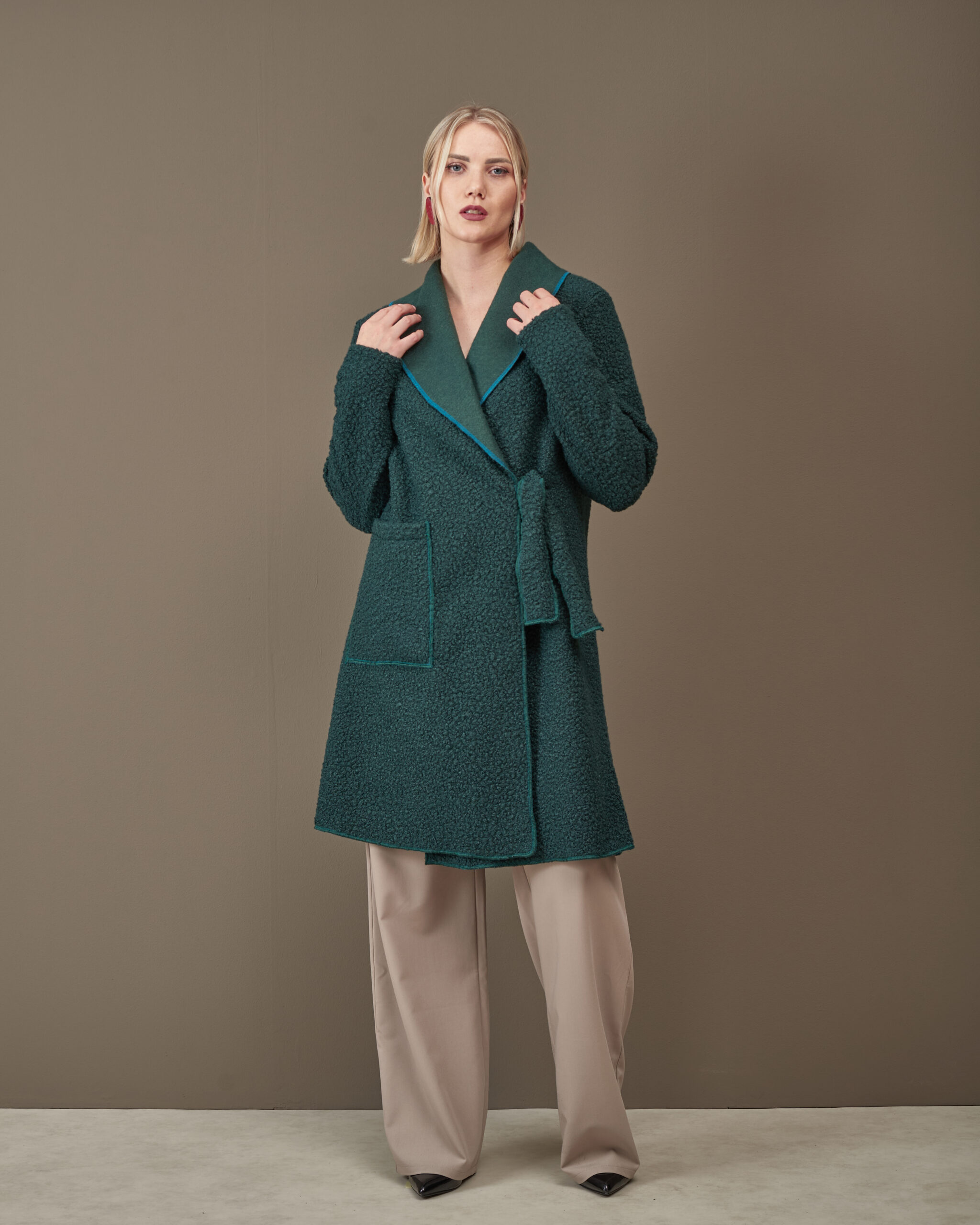 Model ravnog kroja u području struka ima dvije trake pomoću kojih se može nositi zakopčan.
