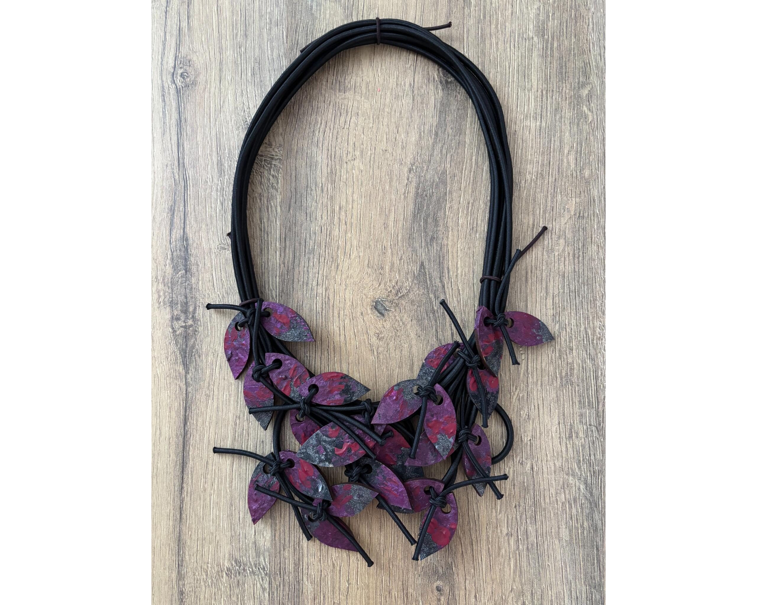 Ogrlica sa drvenim dodacima koji su ručno oslikani idealan je izbor za podizanje svake modne kombinacije.