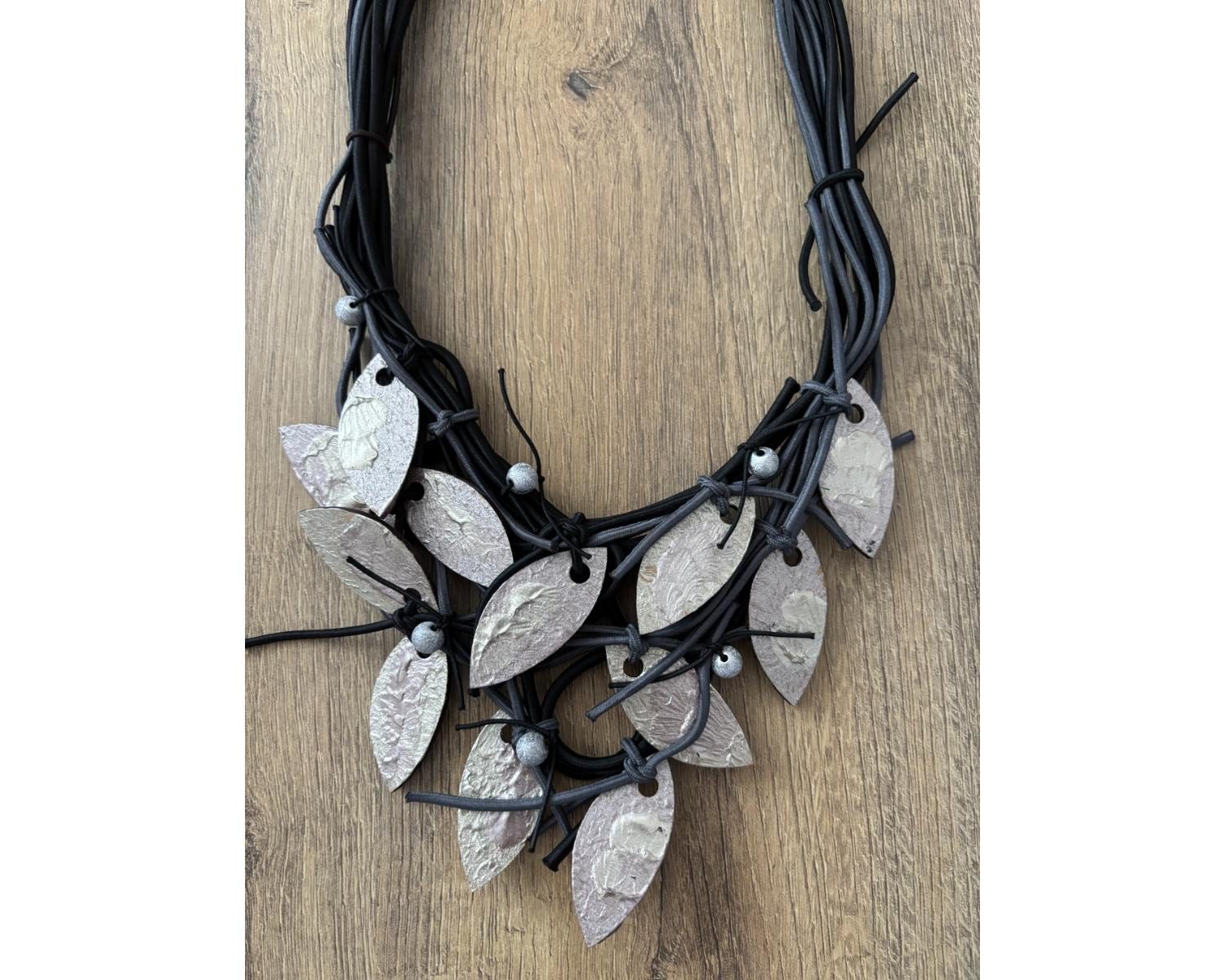 Ogrlica sa drvenim dodacima koji su ručno oslikani idealan je izbor za podizanje svake modne kombinacije.