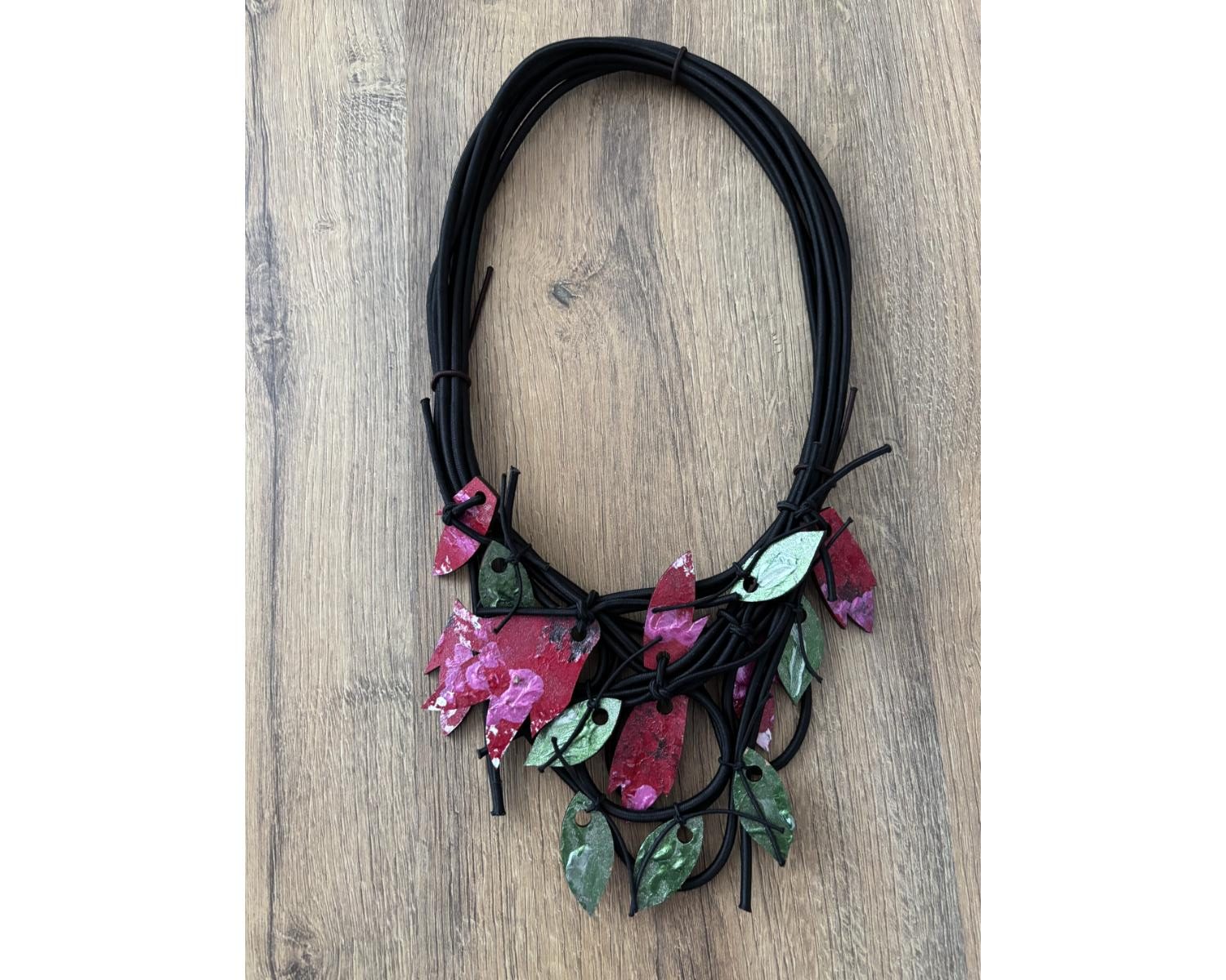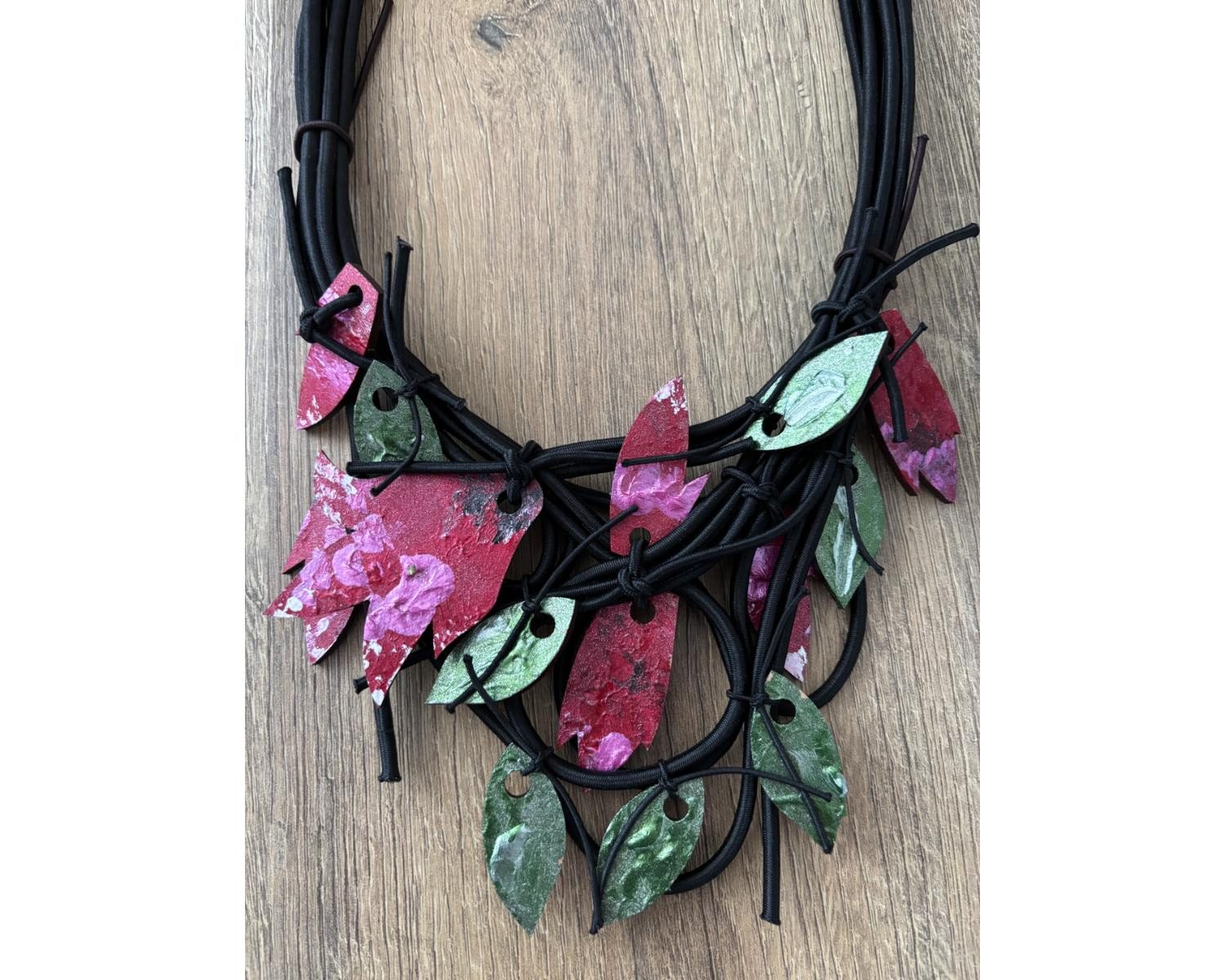 Ogrlica sa drvenim dodacima koji su ručno oslikani idealan je izbor za podizanje svake modne kombinacije.