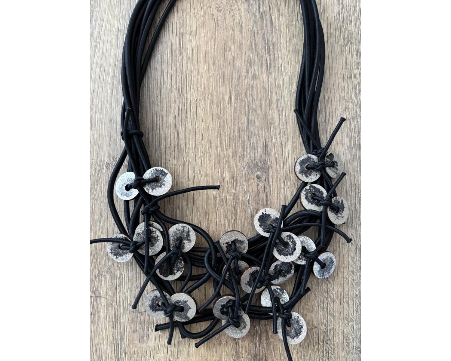 Ogrlica sa drvenim dodacima koji su ručno oslikani idealan je izbor za podizanje svake modne kombinacije.