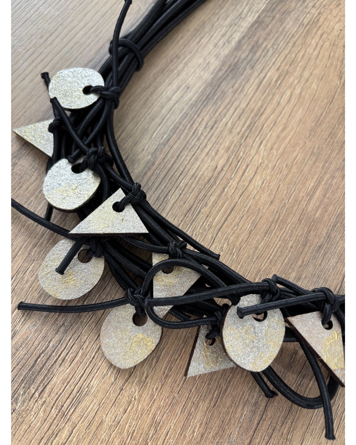 Ogrlica sa drvenim dodacima koji su ručno oslikani idealan je izbor za podizanje svake modne kombinacije.