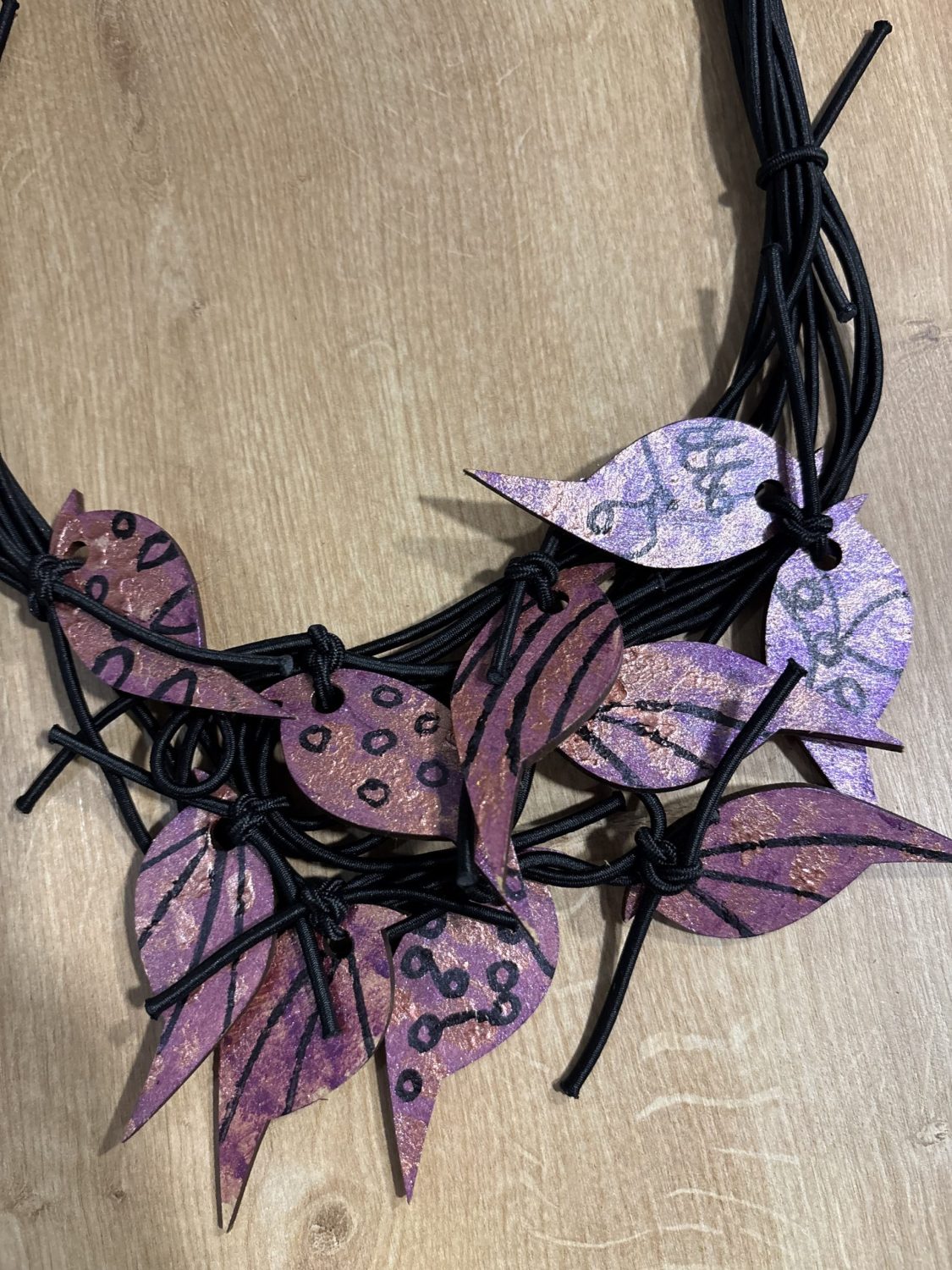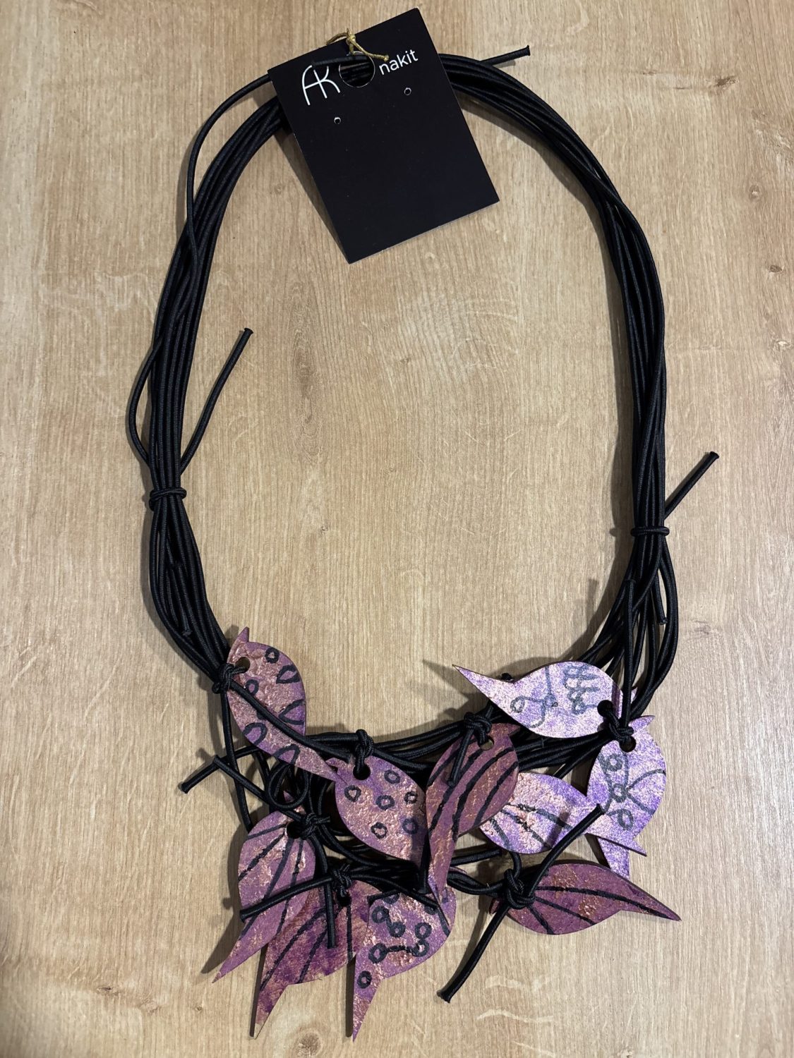 Ogrlica sa drvenim dodacima koji su ručno oslikani idealan je izbor za podizanje svake modne kombinacije.