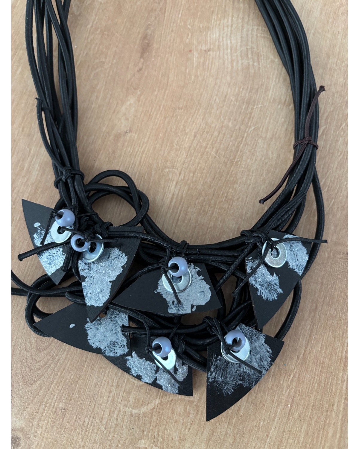 Ogrlica sa drvenim dodacima koji su ručno oslikani idealan je izbor za podizanje svake modne kombinacije.
