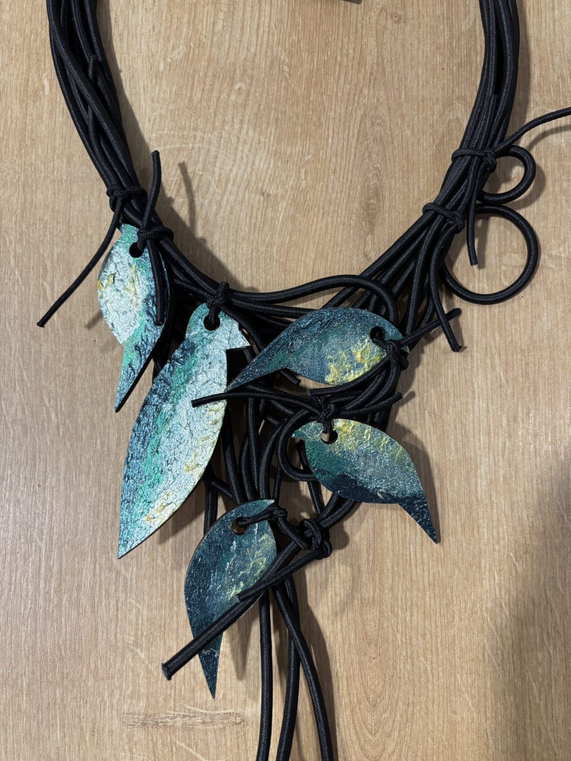 Ogrlica sa drvenim dodacima koji su ručno oslikani idealan je izbor za podizanje svake modne kombinacije.