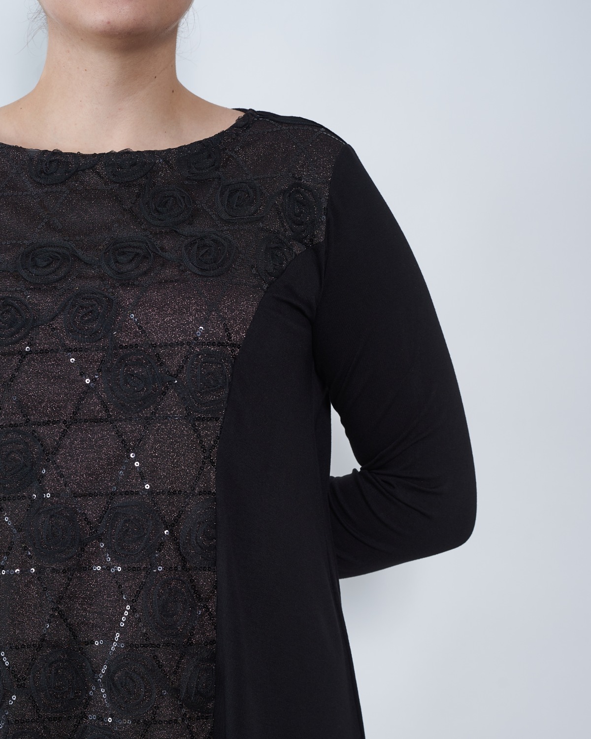 Model A kroja krasi brončani umetak prekriven crnom čipkom.