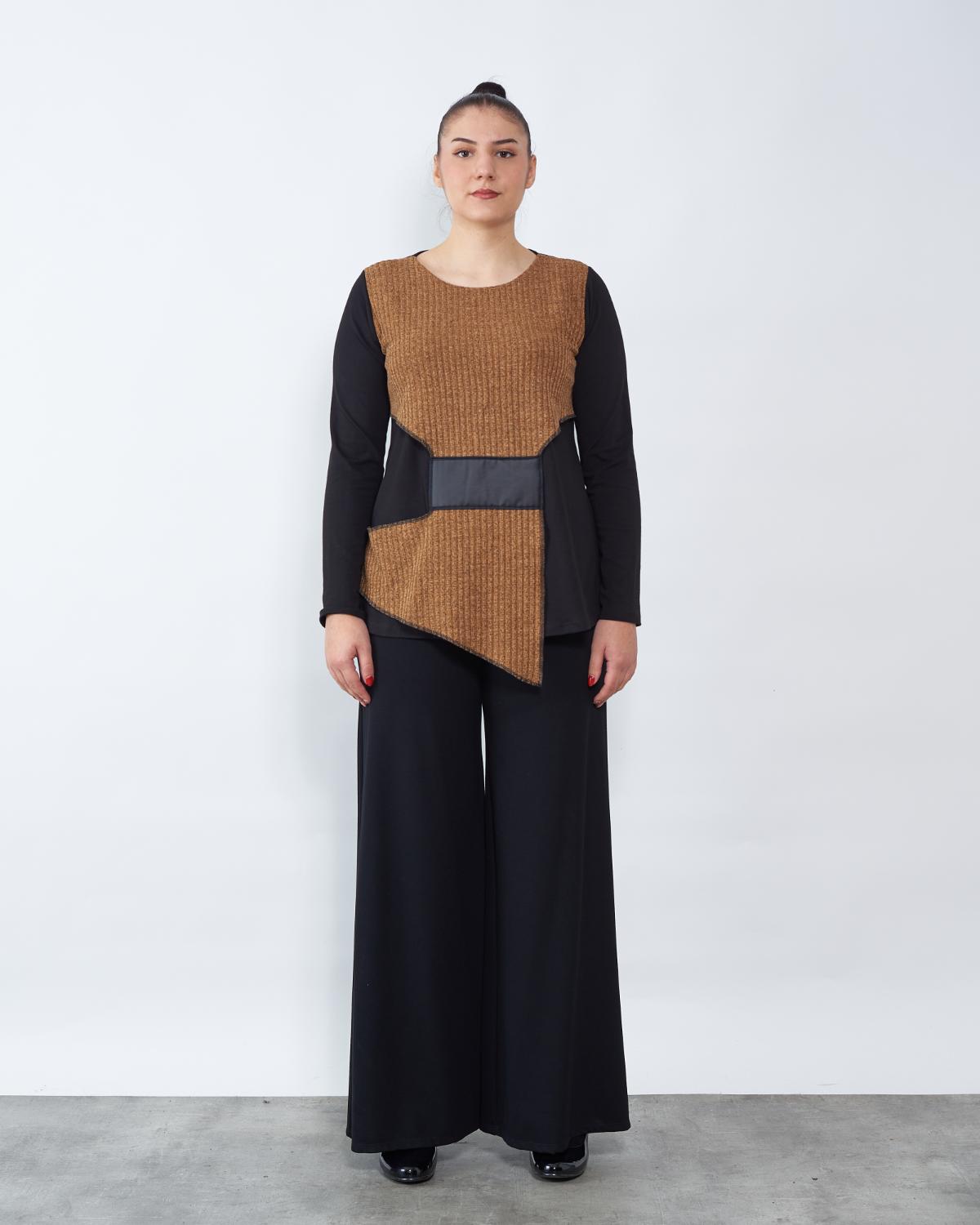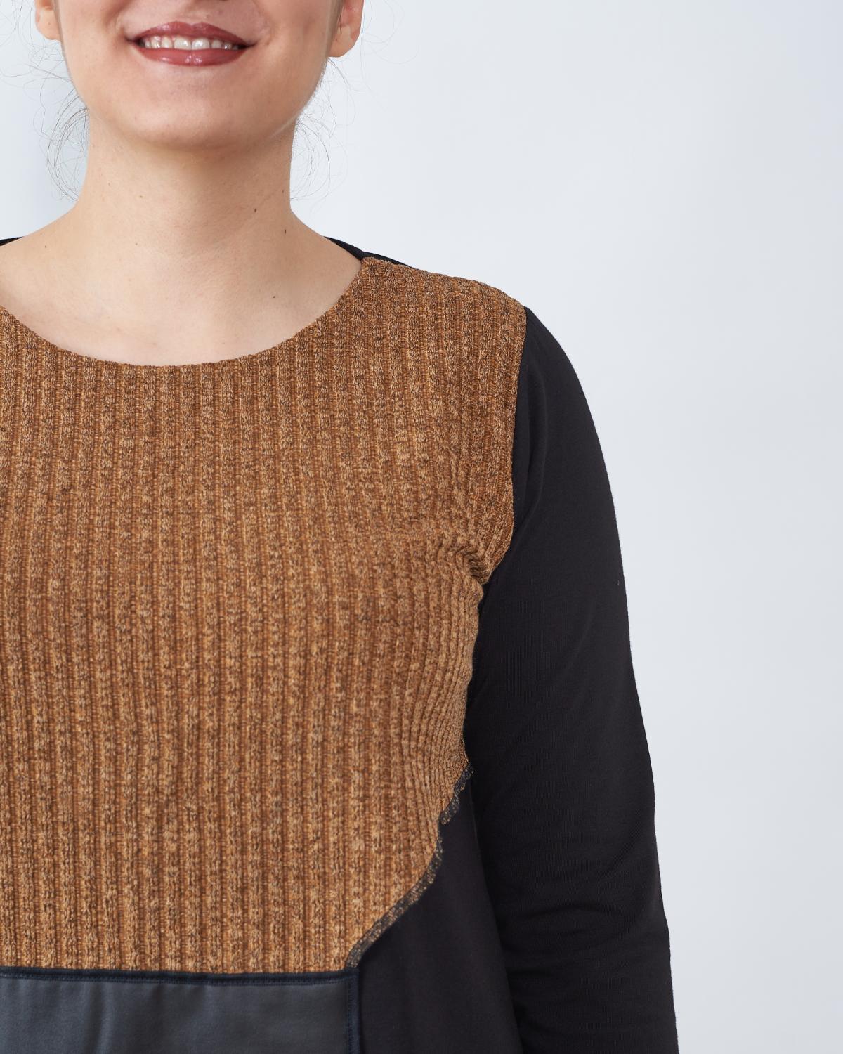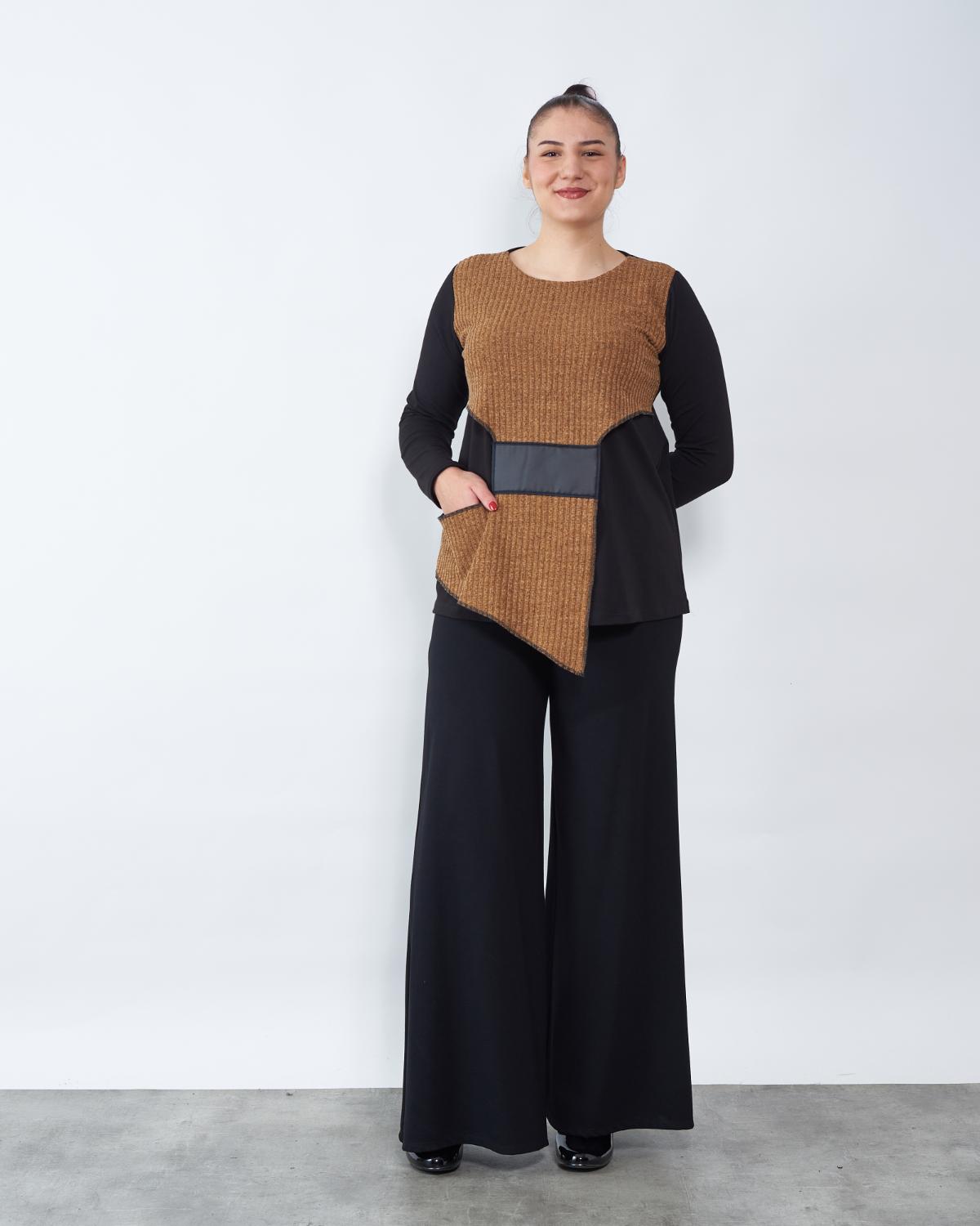 Kraći model tunike u kombinaciji oker i crne boje.