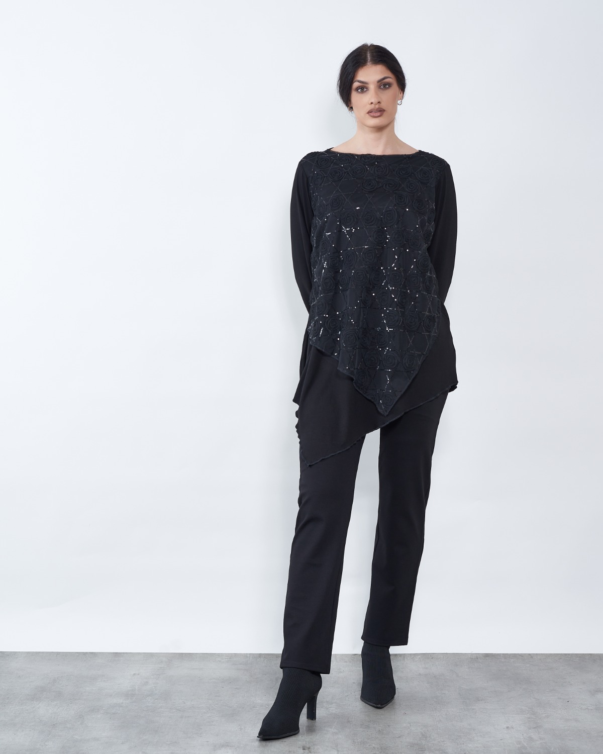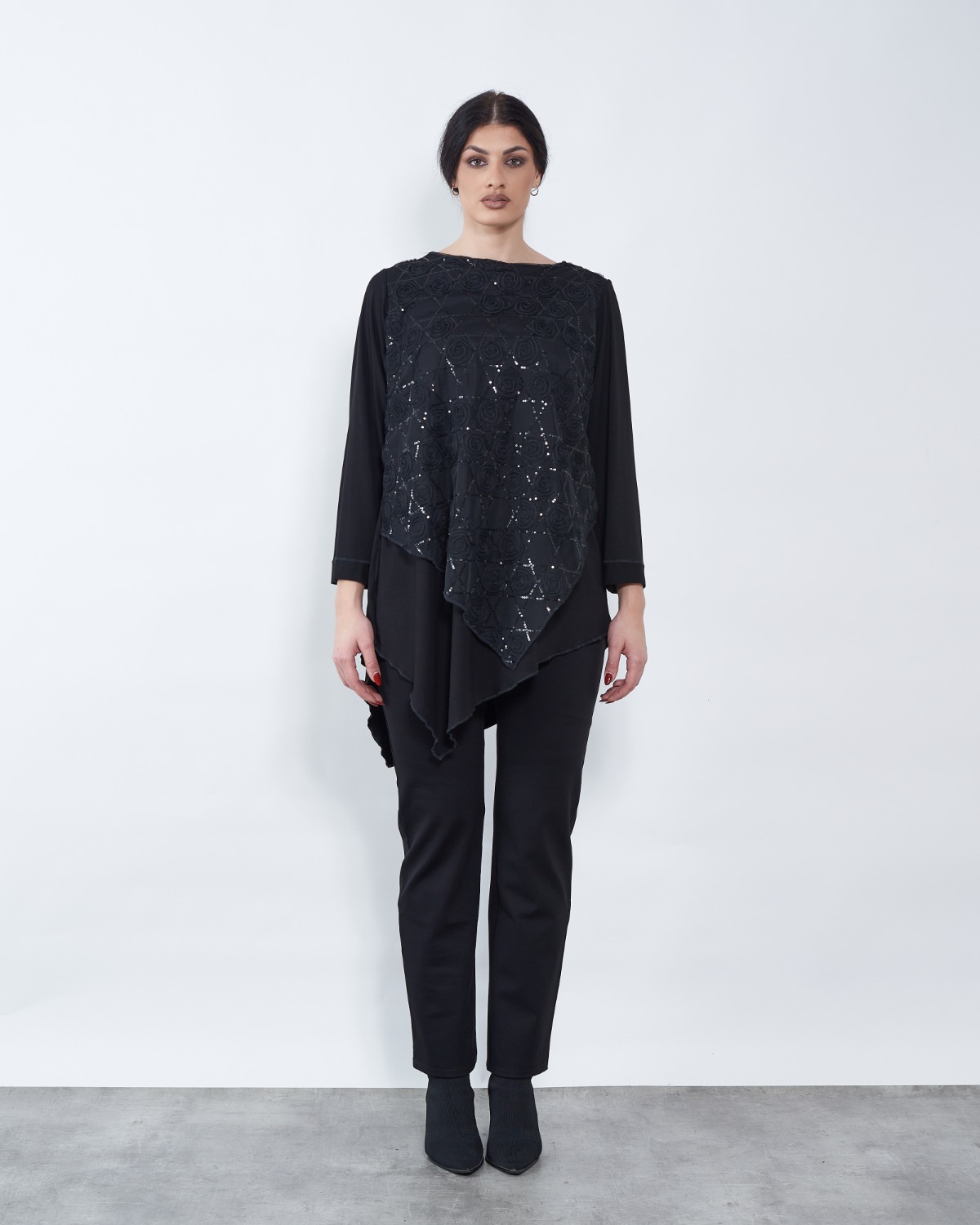 Tunika završava asimetrijom.